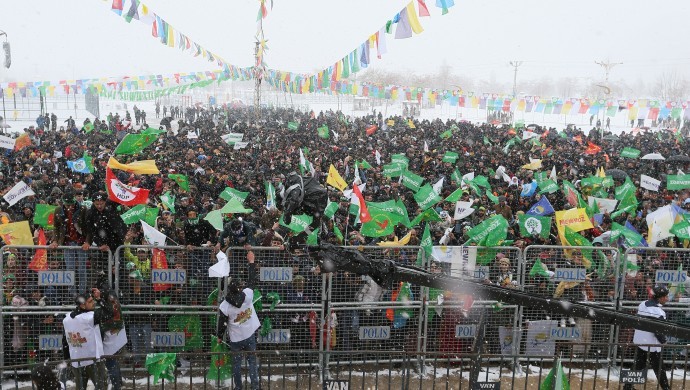 WAN – Li Wanê, rexmî barîna berfê jî Bi sed hezaran kesî herikîn ber keleha Wanê û qada Newrozê têje kirin. Hê jî herikîna waniyan a ber bi qada Newrozê ve didome. Piraniya kesên ku tên Newrozê ciwan in. Waniyên ku bi kincên xwe yên herêmî û rengîn hatine qada Newrozê mîna baçeyên gulan qadê bi rengên xwe xemilandine. Li qadê bi yekdengî dûrişmeya “Bijî Serok Apo” tê berzkirin.