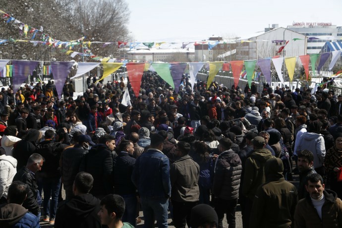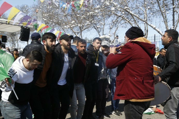Gelê Silopiyayê bi cil û bergên xwe yên kurdî û bi rengên xwe yên kesk, sor û zer diherike qada Newrozê. Ciwanan jî bi dirûşma “Bê Serok jiyan nabe” peyama ewil a Newrozê dan.