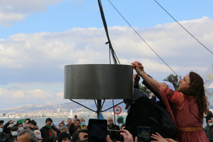 Li Îzmîrê, bi deh hezaran kes li Qada Gundogduyê li hev kom bûn û Newrozê bi çoş pîroz dikin.