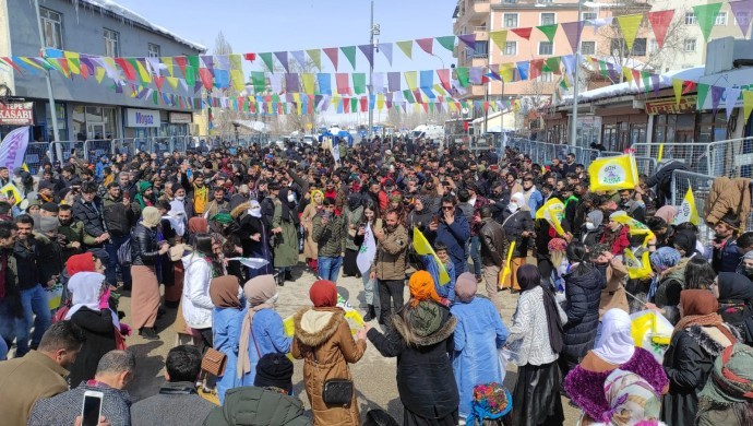ERZIROM – Pîrozbahiya Newroza 2022’yan ku bi dirûşma “Dem dema serkeftinê ye” tê lidarxistin, bi tevlibûna hezaran kesan li navçeya Tatos a Erziromê dest pê kir. Newroz, li Dûryana Xaçerêyê hat pîrozkirin. Hêj ji saetên serê sibehê ve welatiyan berê xwe dan qada Newrozê.