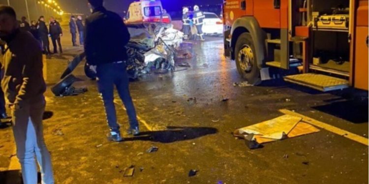 Agirê ku piştî qezayê bi wesayitekê ket, ji aliyê tîmên arkujiyê ve hate vemirandin.