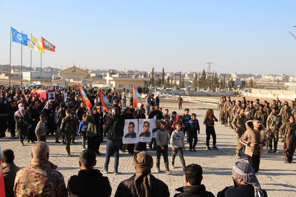 Piştre wesîqeya şehadetê ya şehîd ji aliyê endama Meclisa Malbatên Şehîdan a Minbicê Mehmûd El-Îdo ve hate xwendin û radestî malbata wî hate kirin.