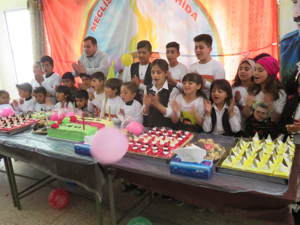 GIRKÊ LEGÊ – Bi nêzîkbûna rojbûna Rêberê Gelan Abdullah Ocalan, Meclisa Malbatên Şehîdan a Girkê Legê ya kantona Qamişloyê, îro şahiyek ji zarokên şehîdan re li dar xist.