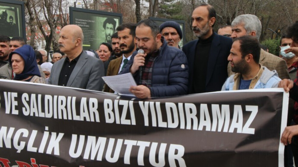 ÊLIH – Komeleya Mafên Mirovan (ÎHD) a Şaxa Êlihê têkildartî gefên li endamên Meclîsa Ciwanan a HDP’ê tên xwarin, li Parka Ataturkê daxuyanî da. Parlementerê HDP’ê Necdet Îpekyuz, aktivîstên Tevgera Jinên Azad, endamên Meclîsa Dayikên Aştiyê, rêvebirên HDP’ê û endamên Meclîsa Ciwanan a HDP’ê tevli daxuyaniyê bûn.