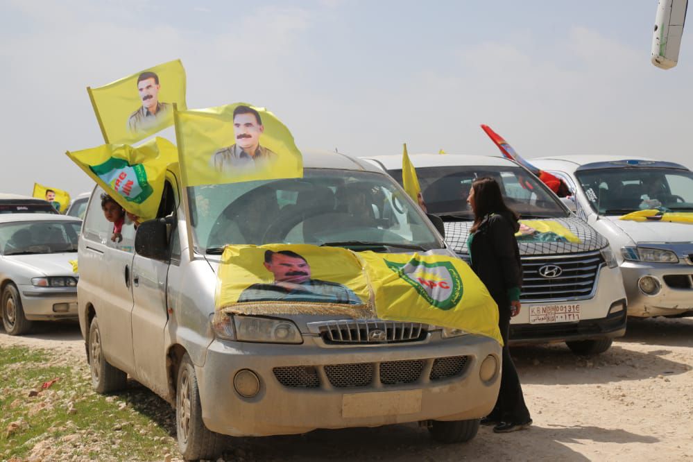Îro Yekîtiya Jinên Ciwan ji bo rojbûna Rêberê Gelan Abdullah Ocalan li Kobanê çalakiyeke bi arebeyan ji bajarê Kobanê heya gundê Rêber Apo El-Pelûr li dar xistin. Di gundê ku Rêber Apo lê dima de pêşengeheke wêneyan hate vekirin, di pêşengehê de wêneyên Rêber Apo hatin pêşkêş kirin.