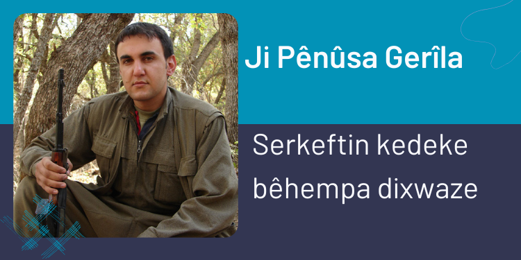 Diherike weke çemekî ev jiyan, ne diweste, ne jî radiweste. Bê destpêk û bê dawiye, her tiştî di nava xwe de dihewîne. Pîrozî û lanetî, azadî û koletî, kirêtî û xweşikbûn, berxwedanî û xiyanet, wekhevî û bê edaletî… Wiha diherike ev jiyan û tevî dîroka bîr û baweriya mirovahiyê dibe. Ne sînor, ne jî bendavên pergala serwer nas dike, wiha didomîne rêya xwe. Rêber APO barê vê jiyanê hildigre ser milê xwe û ji nûve dinivsîne rêbazên afrandina jiyana azad. Pêdiviyên hebûnê ji ferhengoka dîrokê hilbijart, azadî, rûmet, nasname, serbixwebûn, exlaq, berxwedanî û pîrozî. Bi xwe û bi cewherê xwe, lê ne tenê ji bo xwe jiyan dike Rêber APO. Tişta herî zêde bala min dikşîne ewe ku, di dîrokê de mirovên civaka xwezayî, fedaîyên herî mezin û serkeftîbûne. Bê hesab her kar dikin, ne ji bo xwe, ji bo civaka xwe. Pirtûk û nivîsên wan tinebûn, lê xwe bi jiyanê ve kiribûn yek. Hevsengî û ahengiyek herî xurt di nava xwezaya yekem û dûyem de hatibû ava kirin. Astekî wisa ku tam yekbûn çêbûbû, fikir û pratîk her dem bi hev re pêş diket. Mînak, dema tiştek pêwîst kiriba yekser afrandina wê dihate kirin. Dibe ku ew tişt ne pir pêşketîbe, lê belê li gorî pêdiviyên wê demê baş bû. Ango li gorî fikir û pratîk pêş diket, Ne li gorî qaliban. Mirov dikare bêje, stratejî jiyane, taktîk jî pratîzekirina van fikrane. Mînak, ji bo jiyanê derman pêwîst ba, dayîkan derman çêdikir. Pêwîstî bi nêçîrê an jî kom kirina pincarê heba, her kes li gorî vê pêdiviyên jiyanê pêk dianî. Bê ku tu kes bêje, berpirsyariyek pir mezin dihat raber kirin. Însiyatîf, edalet, aktîfbûn û lêhûrbûnek mezin hebû.