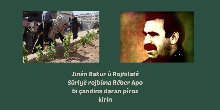 Navenda Nûçeyan – Jinên Bakur û Rojhilatê Sûriyê îro li tevahî Bakur û Rojhilatê Sûriyê ji dayîkbûna Rêberê Gelan Abdullah Ocalan bi çandina daran pîroz kirin. Jinên Bakur û Rojhilatê Sûriyê dan diyarkirin ku di nava paradîgmaya Rêber Apo de ekolojî xwedî girîngiyeke mezin e, em jî weke jin li paradîgmaya Rêber Apo xwedî derdikevin.