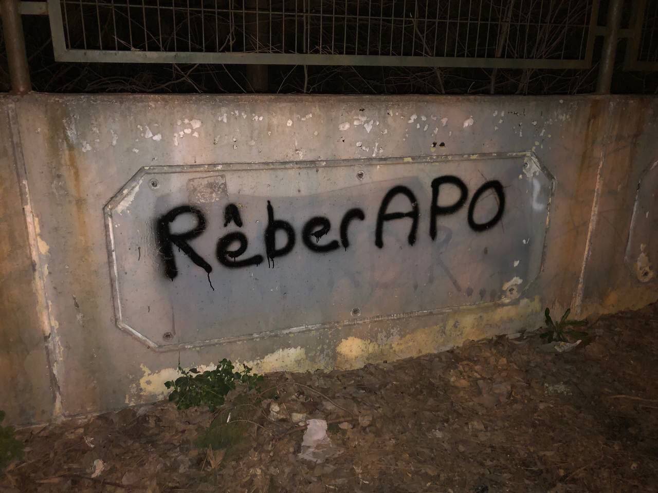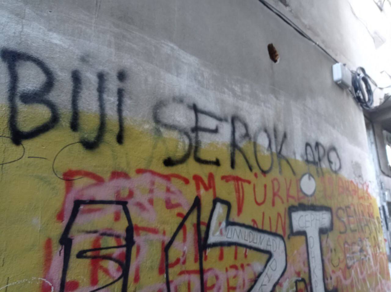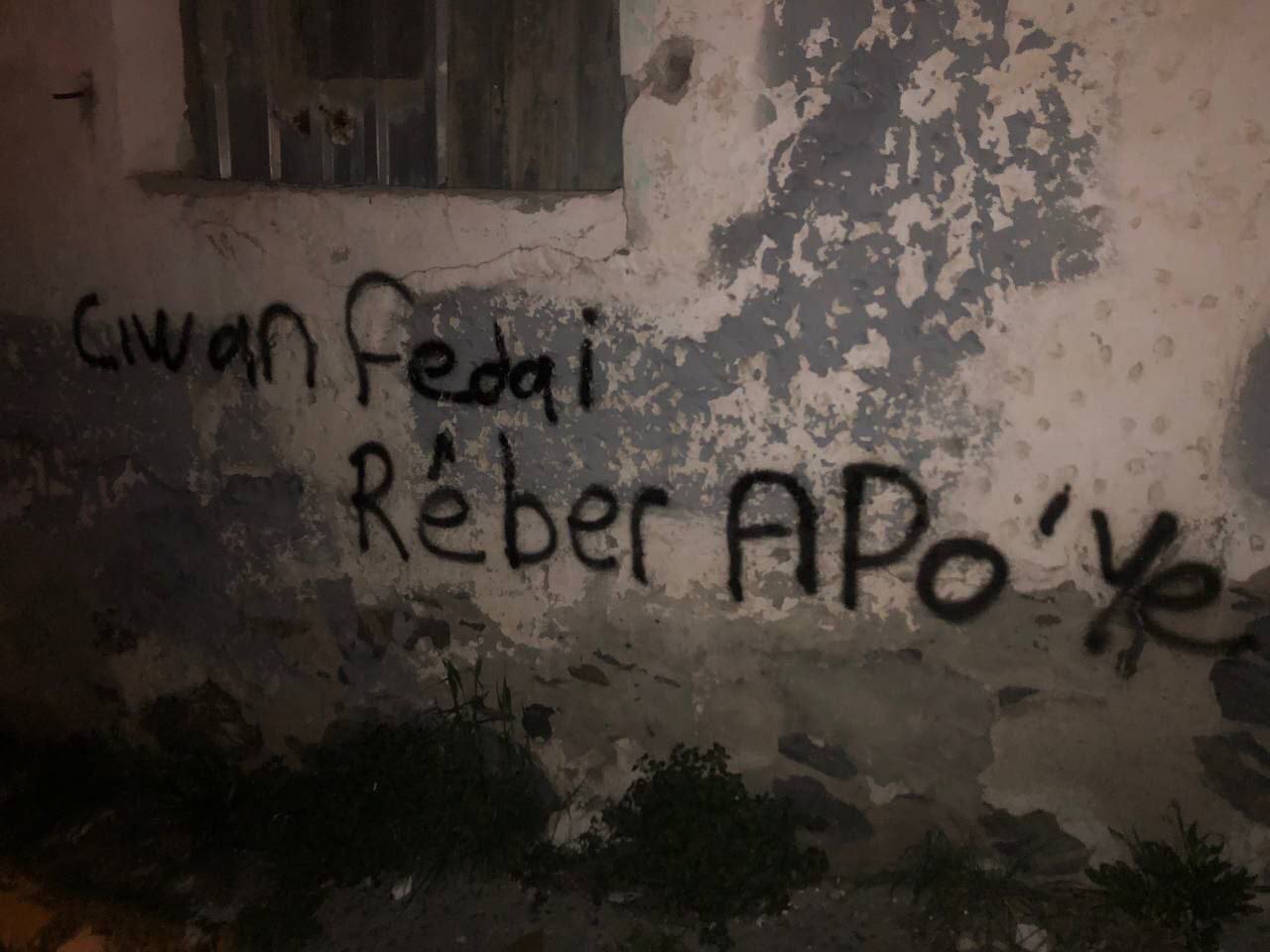 Di nivîsên ciwanan de nivîsên “Be Serok Jiyan Nabe”, “Ciwan fediyê Rêber Apo ne!”, Bijî Serok Apo” derketin pêş.