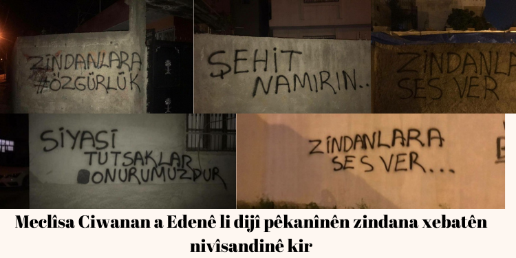 Meclîsa Ciwanan a Partiya Demokratîk a Gelan (HDP) a Edeneyê, ji bo balê bikişîne ser binpêkirinên mafan ên li girtîgehan û girtiyên nexweş, çalakiya nivîskî li dar xist. Ciwanan li Taxa Gulbahçeyê ya Seyhanê li ser dîwaran nivîsa “Bijî berxwedana zîndanan”, “Deng ji zindanan re”, “Ji zindanan re azadî”, “Girtiyên siyasî rûmeta me ne” û “Şehîd namirin” nivîsandin.