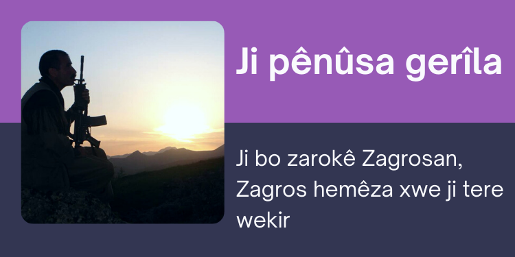 Ji ber dizanî tu yê bibî evîndarê rojê Zagrosan. Te hemêz kir, dizanî tu yê bibî rêhevalê rojê û bi rêya re stiyê re bimeşî Zagrosan. Te hemêz kir te bi şîre singê xwe û bin ava zarokiya da mezkirî. Tu nava bayê azadiyê de û bi bêhna gulê xwe mezin kirî.