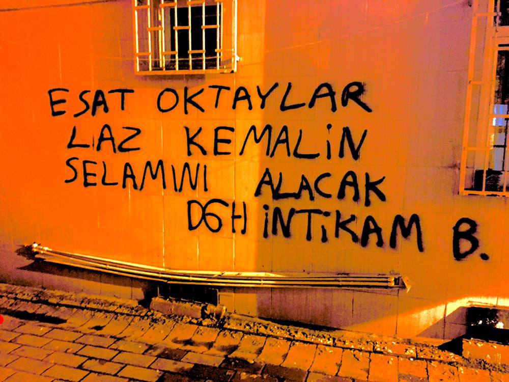 Ciwanên Welatparêz di nivîsan de gotin: “Dewleta Tirk wê hesab bide”, “Esat Oktayan wê silavên Laz Kemal bigirin”, “Dawî li tecrîdê, faşîzmê, dagirkeriyê bînin”, “Bijî Berxwedana Zindanan.”