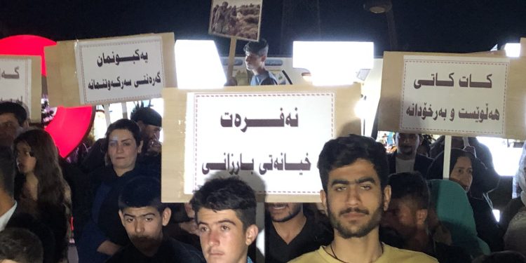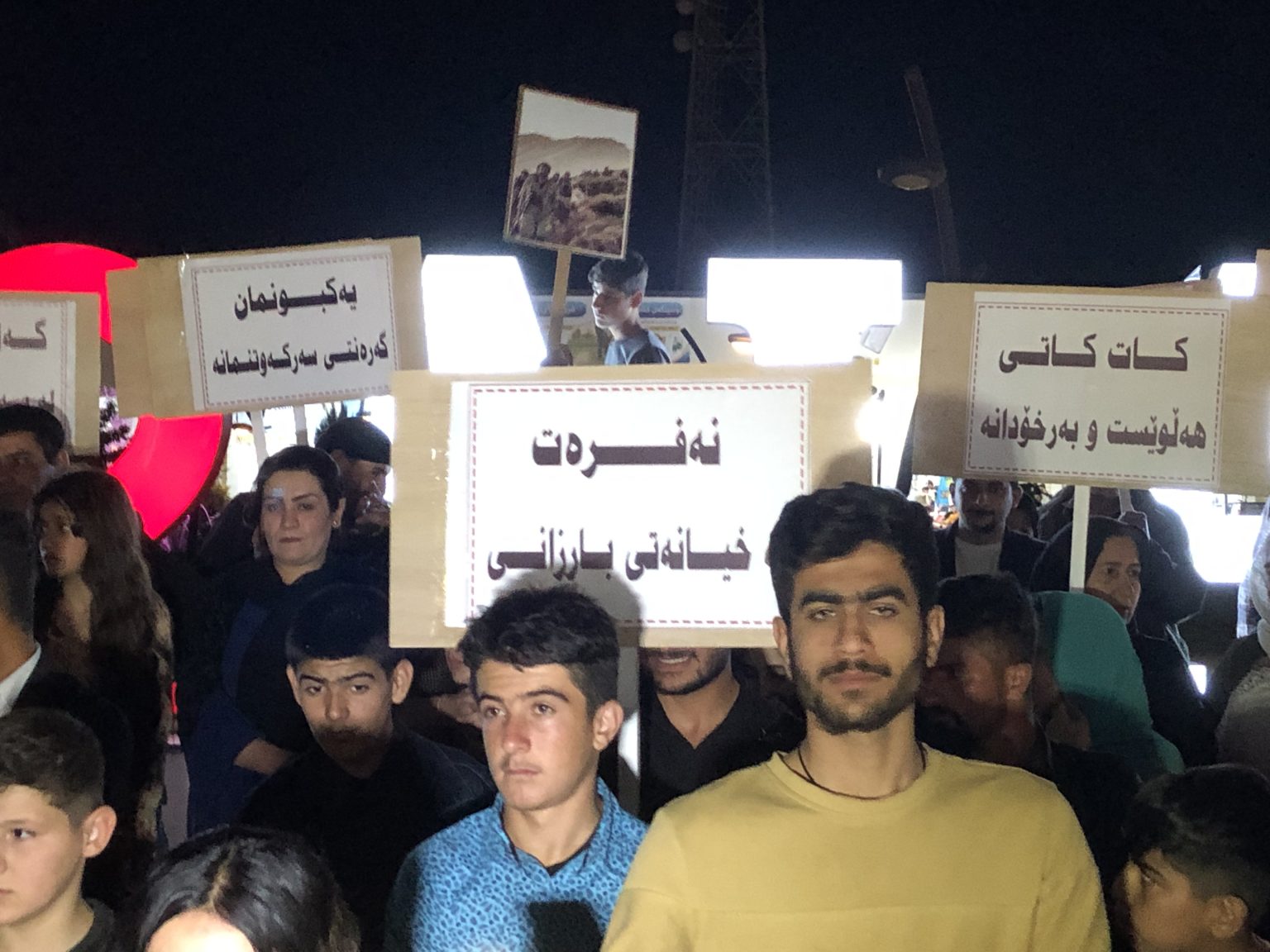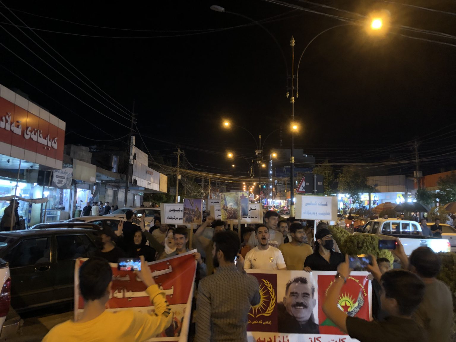 Li bajaroka Qeladizê ya ser bi îdareya Raperîn bi pêşengiya Komeleya Ciwanên Welatparêzên Kurdistanê û Rêxistina Jinên Ciwanên Têkoşer li dijî êrişên dewleta Tirk ên li ser Herêmên Parastina Medyayê xwepêşand pêk hat.