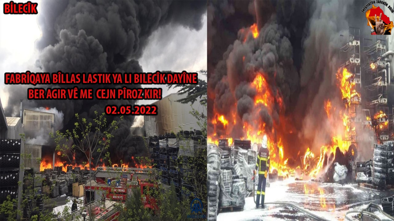 01.05.2022 Li Bilecîk Qada Organize Sanayi ya 1. de Fabrîqaya Billas ya Lastîk ji aliye Kurdên bi sonda tolhildanê ve hat şewitandin.