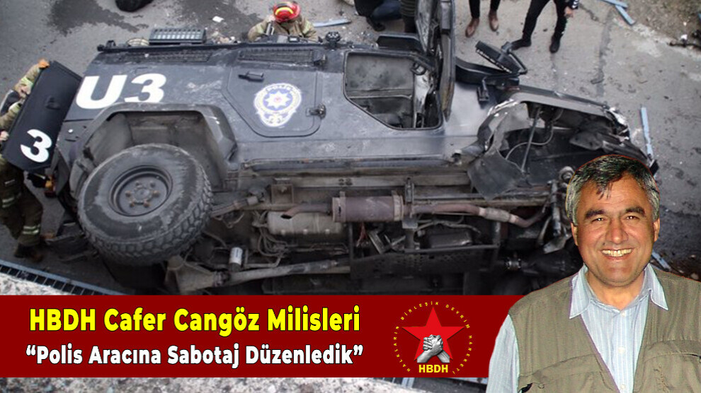 STENBOL – Di daxuyaniya nivîskî ya Milîsên Cafer Cangoz a HBDH’ê de hat gotin, “Me roja duşemê 2’ê Gulanê li Sariyerê li dijî wesayîta zirxî ya polîsan a marka Ural bi teknîkeke taybet çalakiyeke sabotajê li dar xist. Di encama çalakiya sabotajê de wesayîta polêsan wergeriya polîsek mir, 2 polîs jî bi giranî birîndar bûn.”