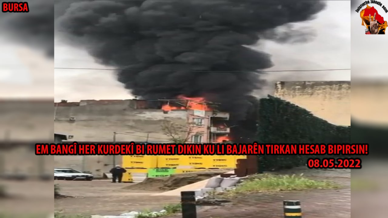 Dem dema şewatandina dagirkerên Kurdistanê ye. Bi çekmak, kevir, dar, kêr, gotin, bi her rê û rêbazê bi ser metrepolên Tirkiyê ve biçin. Hemû ciwan, jin, zarok, kal û pîr, yên bi şeref divê welatê xwe biparêzin. Me jî weke Însiyatîfa Zarokên Agir li Antalyayê rêstorantek ayîdî faşîstan, li Bursa depoyek, li Çanakalê jî du erebe dan ber agir.