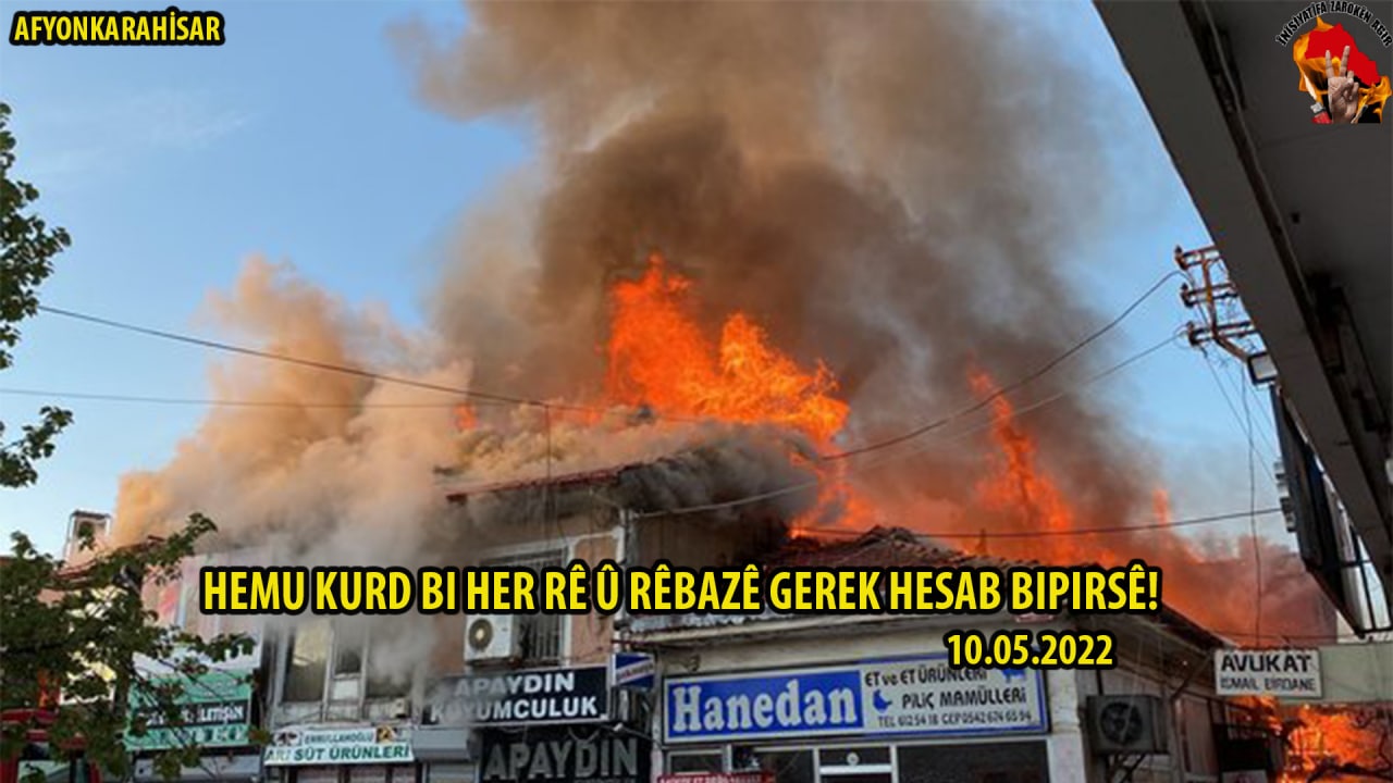“Di 09.05.2022’an de li sûka Bolvadîna Afyonkarahîsarê 15 kargehên ku dijminê Kurdan bûn hatin şewitandin.