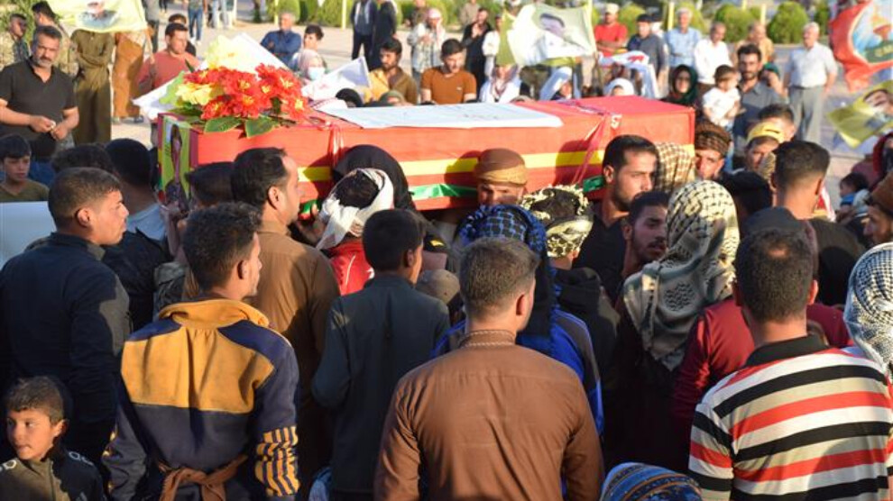 HESEKÊ – Bi sedan şêniyên bajarê Hesekê bi merasîmekê cenazeyê şervanê Hêzên Sûriyeya Demokratîk (QSD) Berdî Ebdulkerîm El Faris (Bîgo) ê dema erka xwe bi cih dianî şehîd bû, li Goristana Şehîd Dijwar a li gundê Dawudiyê spartin axê.