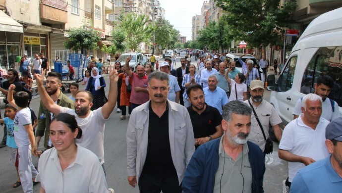 AMED – Li Amedê bi boneya Meşa Gemlîkê dê bi dirûşma “Li dijî siyaseta tecrîdê em ê ji bo parastina azadiyê ber bi Gemlîkê ve bimeşin” daxuyanî hate dayîn û piştî daxuyaniyê jî girse bi dirûşman meşiya.
