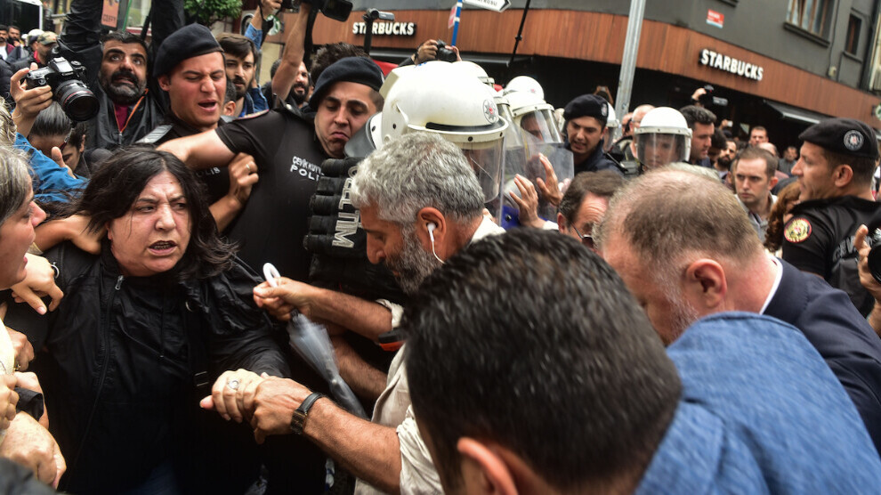 Parlamentera HDP’ê Dilşat Canbaz Kaya ku xwest biçe ber avahiya SYKP’ê rastî tundiya polîsan hat.