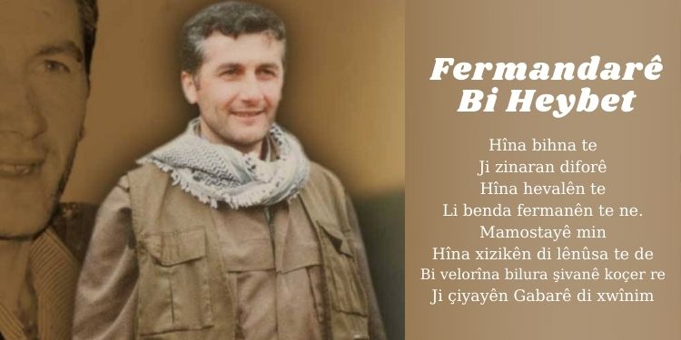 Mirov ji ber matmayî dima. Her timî çavê min li heval Erdal bû, her çende ku ew di meşê de ne disekinî (diçû pêş û dihate paş). Lê carna te digu qey tiştekî xwe winda kiriye û lê digerê-kûr, kûr li xwezayê dinêrî- di xwest wê xwezayê bi tevayî ciwaniya wê bikşîne nava xwe. Ji xwe hertim piştî ku nefeseke kûr dikişand destên xwe dirêj dikir û di got: “ev der welate, eve cihê ku gerîla bikarbe xwe tê de jiyan bike.” Bi rastî heskirana heval Erdal ji Gabar re ne dikete tû teredudê de, lewra ew bûbû bav û dayîk û kur jê re. Çi kun û şûnên, bi ewle hebûn wî dînasîn. Baş tê bîra min dema em gihiştin serê gir, kunek hebû, dema mirov dikete hundirê wê de pir tarî bû, lê ji kevin de hineka di hindirê wê de pêlekan çêkirbûn, di biniya pêlekanan de avakî bûş diherikî, heger yek ji me biketa ewê bi avê re biçûna. Em bi hev re dadiketin. Te digot qey kuneke xeyaliye û em tê de dimeşin. Di wê tariyê de Heval Erdal li kêleka min bû û wiha got: “hûn dizanin ez niha çi hîs dikim, ez hîs dikim ku ez niha li gerdûnekî tarî û vala dimeşim.” Piştî wê axaftinê qerfên xwe bi min kir, lewra ez pir bi baldarî dimeşiyam. Ew hat û li min ket, ez pir tirsiyam, ji ber ku ez li ber ketinê bûm lê wî ez girtim û wiha got: “ne tirse tu nakevê hevala Warşîn. Heger şûna ku tu li ser dimeşê jê hez nekê, tu nikarê li ser bimeşê, ha li min binêre ez dikarim çavê xwe bigrim û bimeşim.”