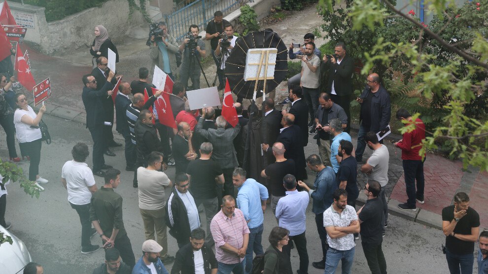 ENQERE – Li pêşiya Navenda Giştî ya HDP’ê di bin çavdêriya polisan de provokasyona hat derxistin. Dema ku komcivîna Hevserokê Giştî yê HDP’ê Mîthat Sancar berdewam dikir, komek provokator di bin çavdêriya polisan de bi tacaguleke reş û alên tirk hat pêşiya HDP’ê û heqaret li HDP’iyan kir û gef li wan xwar.