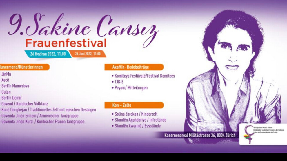 9’yemîn festîfala Şehîd Sakîne Cansiz wê li Zurihê were li darxistin