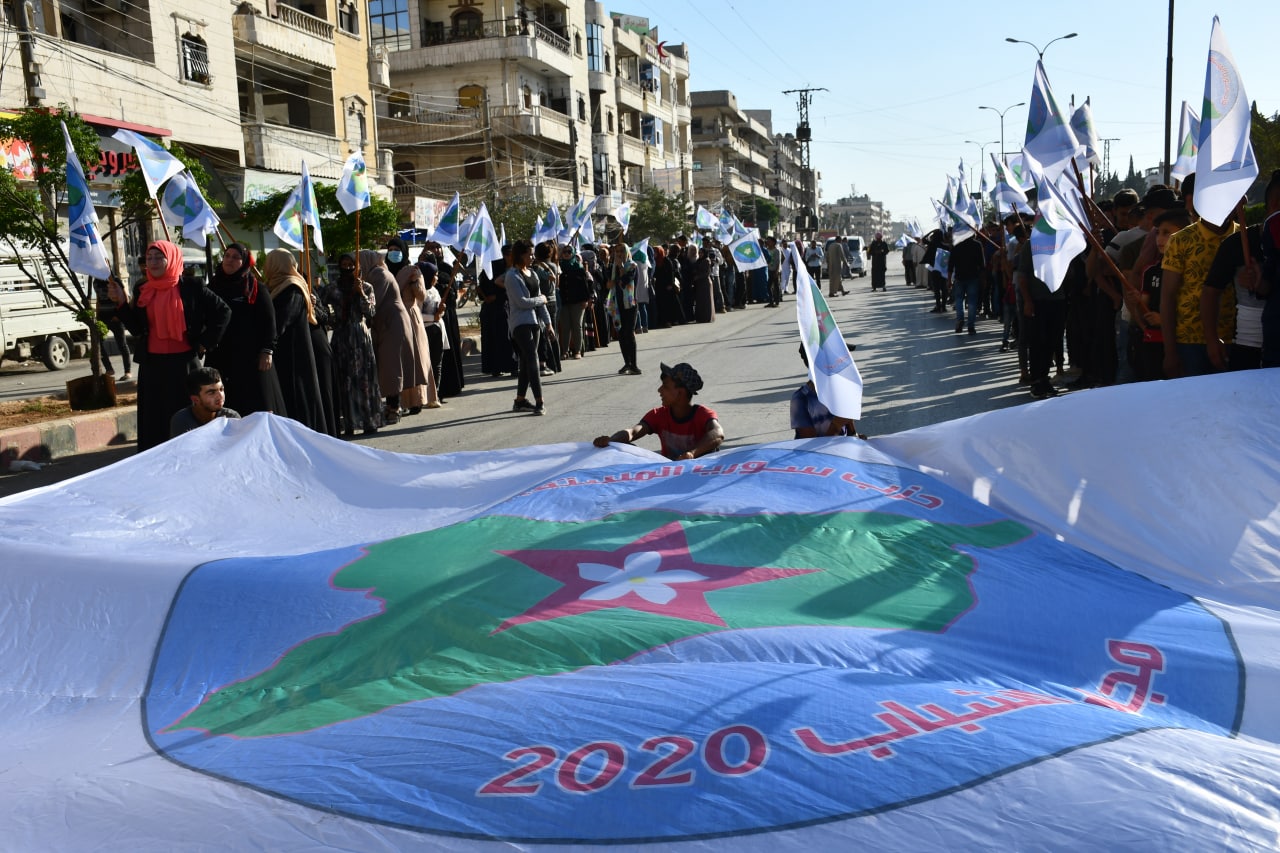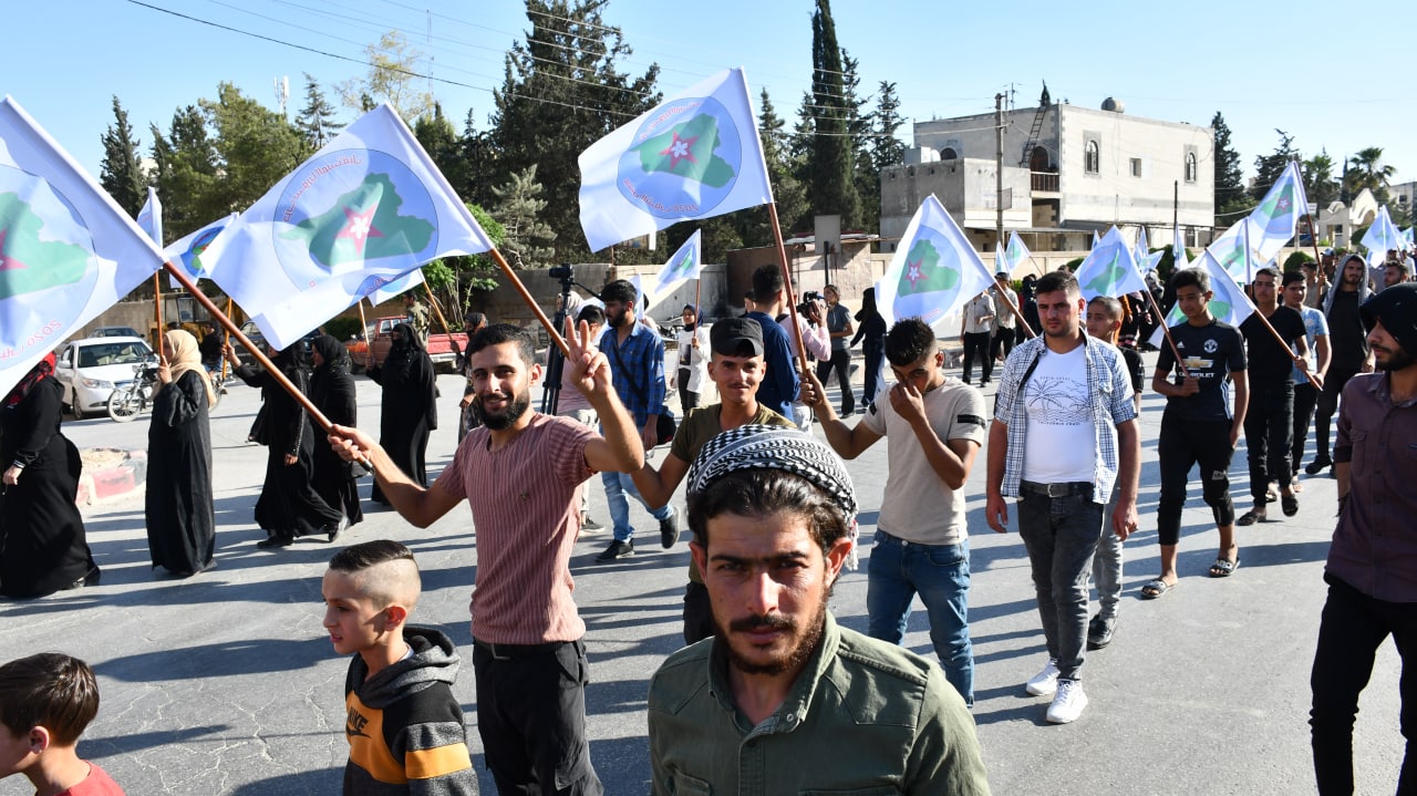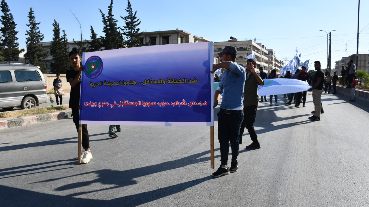 MINBIC – Meclîsa Ciwanên Partiya Sûriya Pêşerojê bi dirûşmeya “Li dijî dagirkerî û îxanetê, werin cenga azadiyê” li bajarê Minbicê meşeke li darxistin.