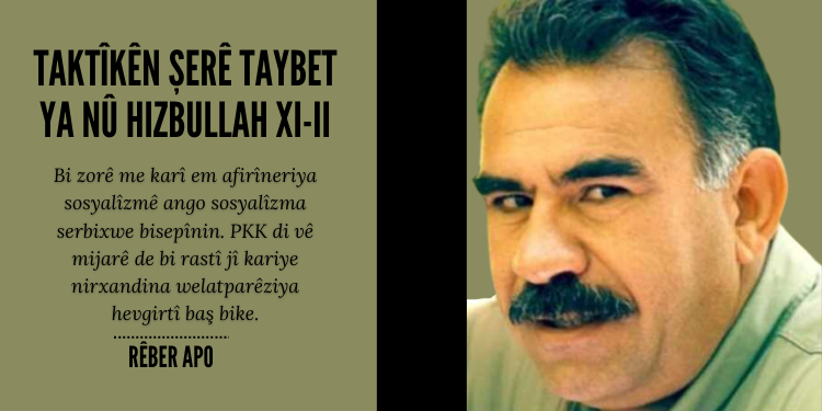 Bi zorê me karî em afirîneriya sosyalîzmê ango sosyalîzma serbixwe bisepînin. PKK di vê mijarê de bi rastî jî kariye nirxandina welatparêziya hevgirtî baş bike. Nirxandina sosyalîzm çiye û sepandina wê ya li ser welat serkeftî kiriye. Ev bi têkoşînek dijwar gengaz bûye. Niha em dinêrin, dema têkoşîna me ya rizgarî dikeve qonaxa xwe ya herî encamgir, ji nişkê ve pêkhateyek bi navê “Hizbûllah” derket holê. Di ronahiya van rastiyên dîrokî de ev pêkhateya di bin navê Hizbûllah de dixwazin bikin bela serê me çiye? Jixwe dema em ji aliyê dîrokî ve mijarê digirin dest jî, ji bo ronîkirina vê ye. Di roja me de rewşek pir aloz derdikeve holê. Bi hilweşîna sosyalîzma pêkhatî ve hewl didin bi lez bi berçav bixin.