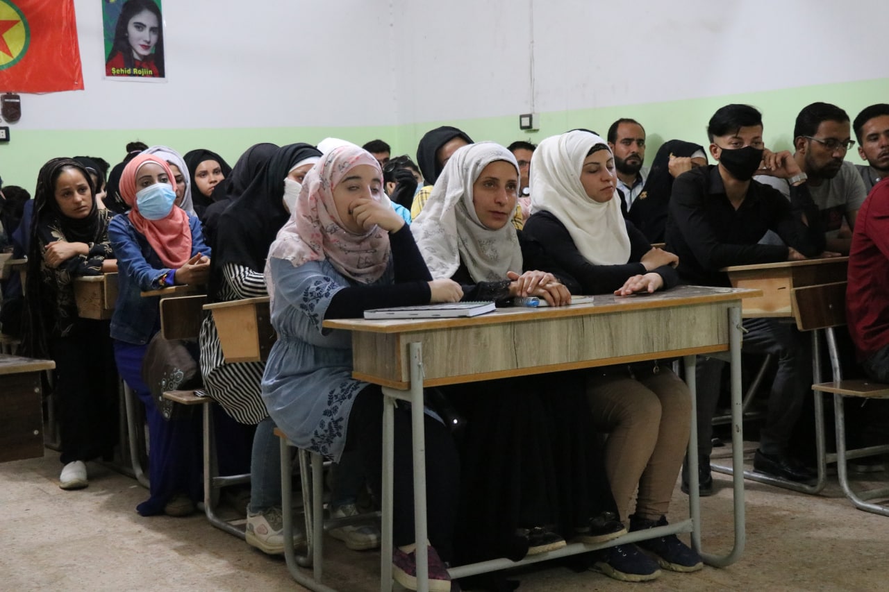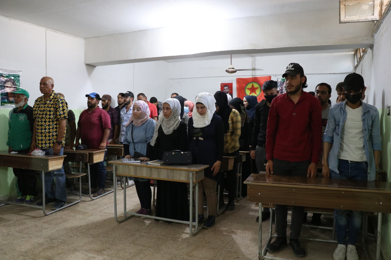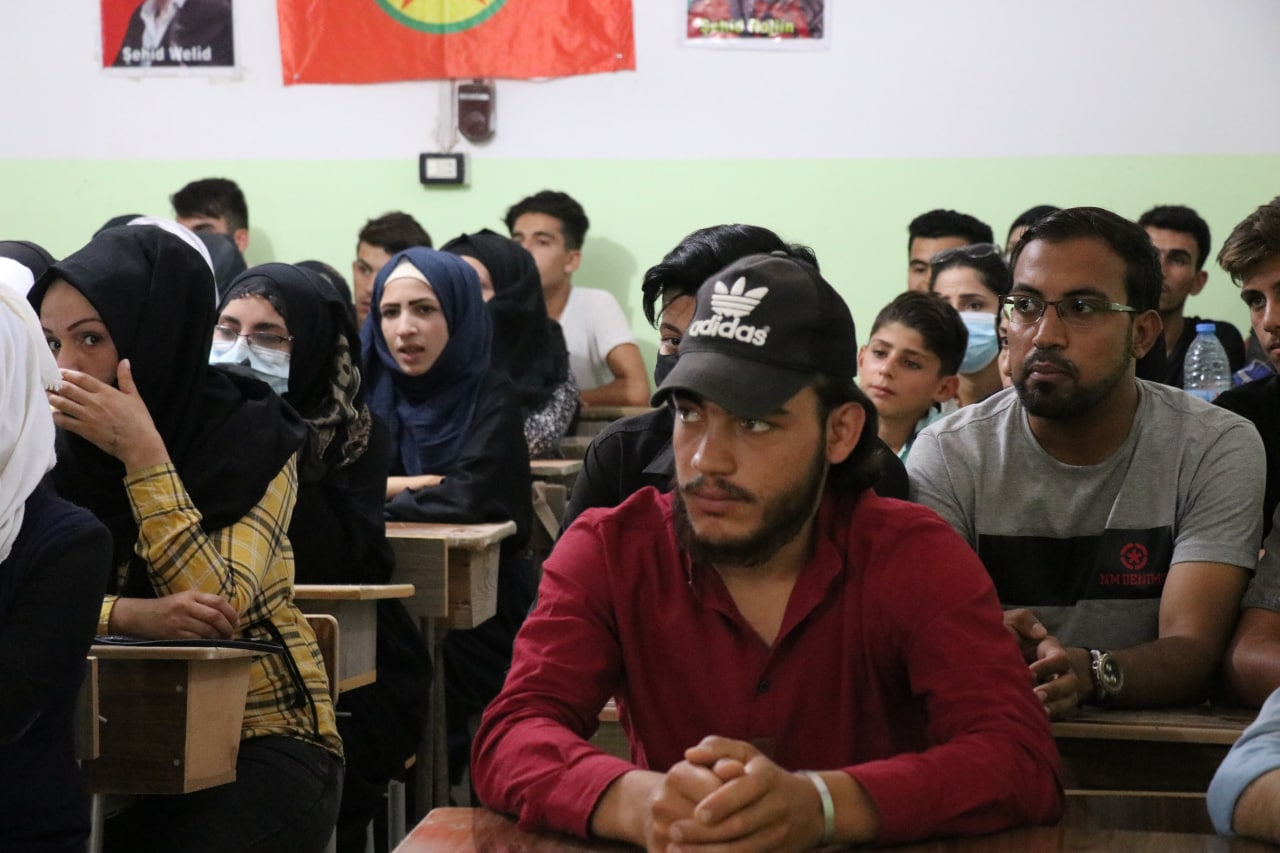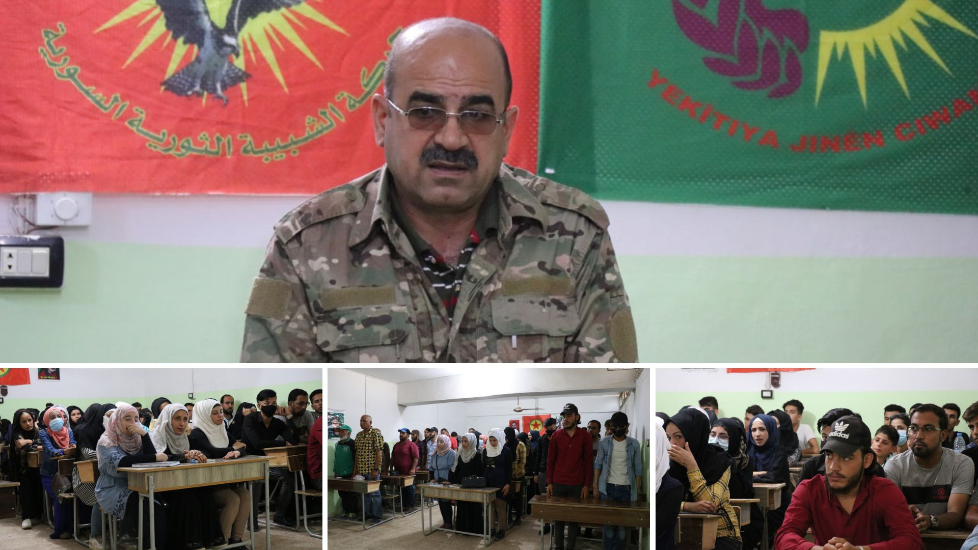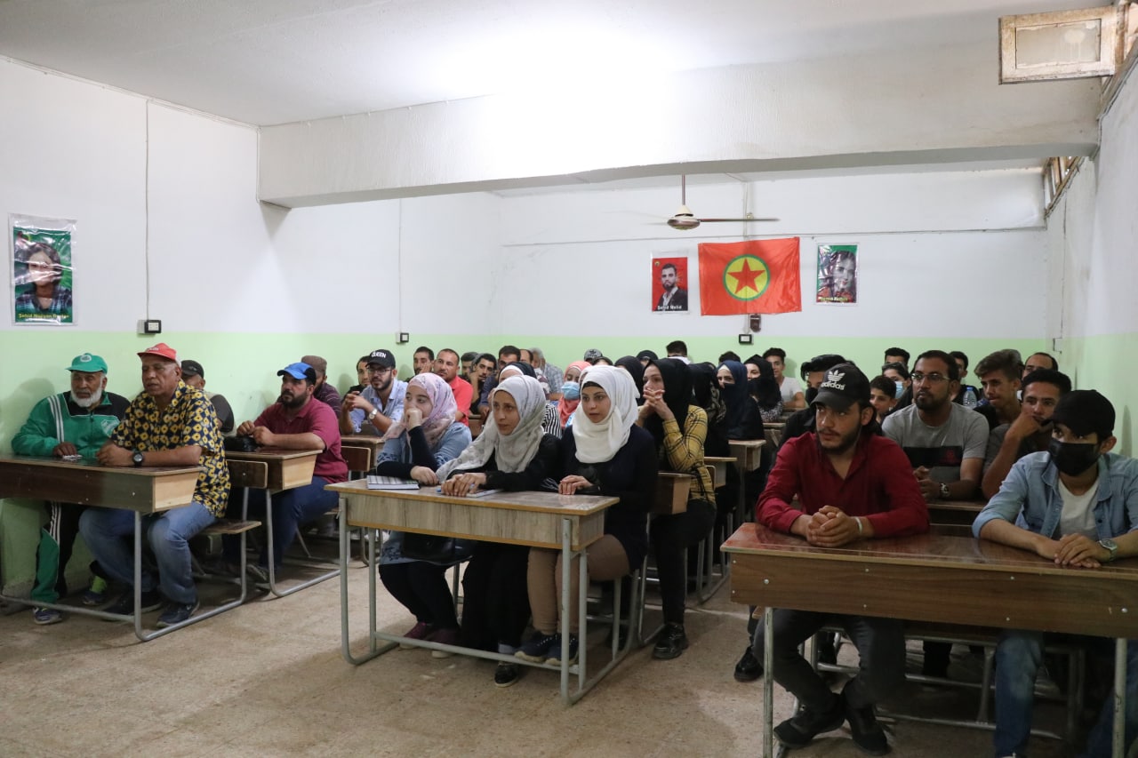 Tevgera Ciwanên Şoreşger û Yekîtiya Jinên Ciwan, li bajarê Reqayê derbarê, rastiya Şerê Gelê Şoreşgerî û rastiya gelê berxwedêr de li navenda bajêr, bi amadebûna Berdevkê Hêza Sûriya Demoqratîk Hisên Koçer civînek li darxistin.
