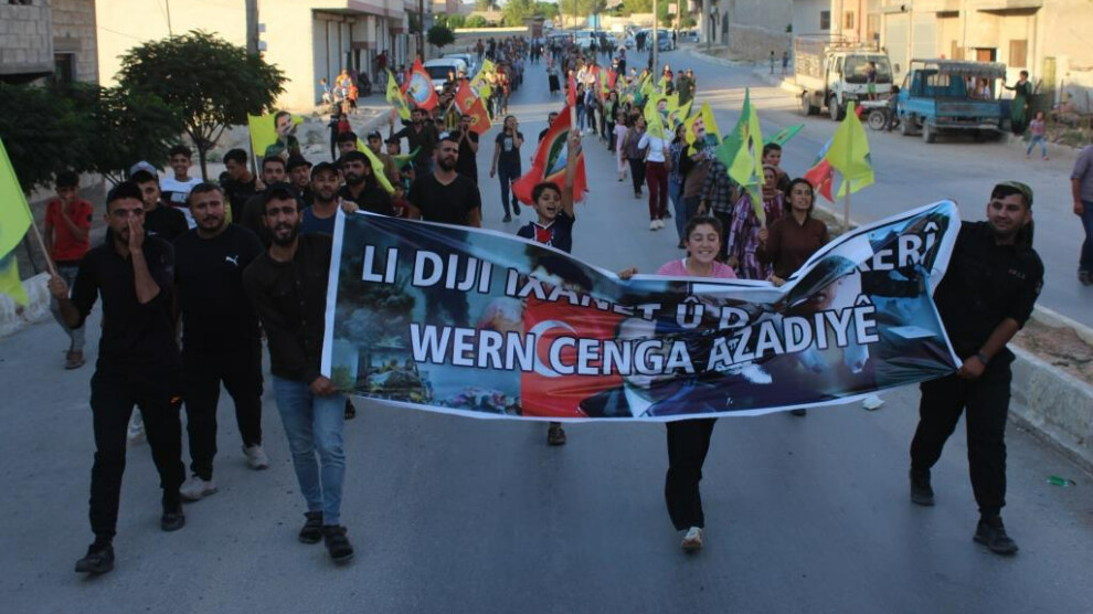 KOBANÊ – Tevgera Ciwanên Şoreşger û Yekîtiya Jinên Ciwan li dijî sûcên dewleta Tirk ya li ser mirovahiyê meşeke girseyî li darxistin.
