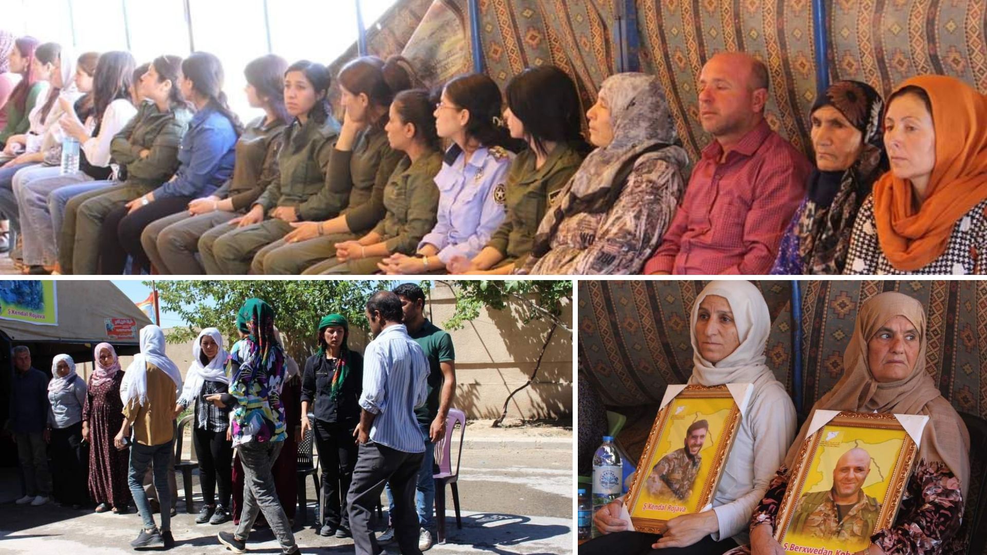 Di konê de nûnerên hemû saziyên girêdayî Rêveberiya Xweser û yên leşkerî ên bajêr û welatî bi awayeke girseyî berê xwe dan konê. Li wir di şexsê her sê şehîdan de ji bo tavahî şehîdên rêya azadiyê deqeyek rêz hat girtin.