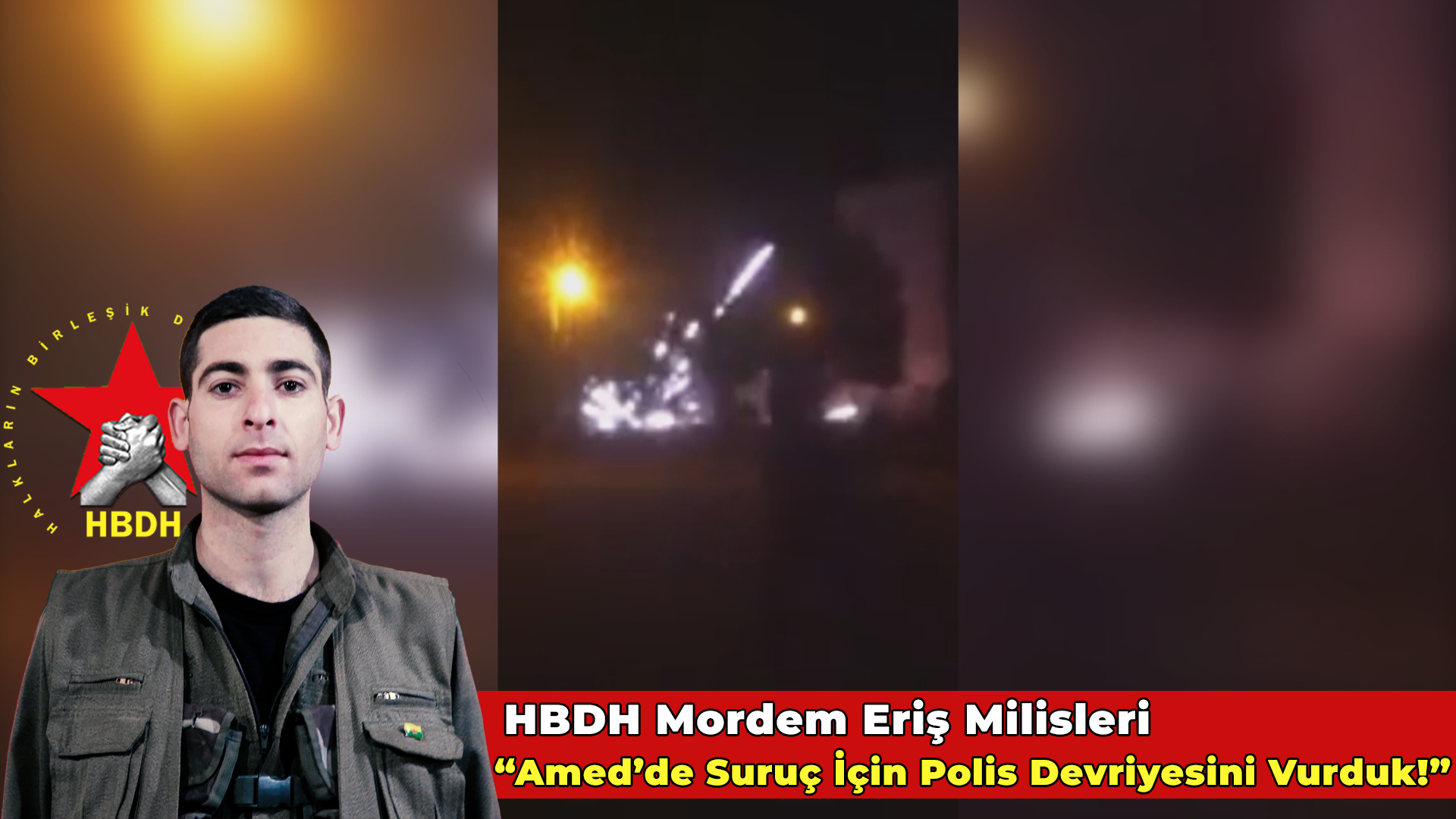 AMED – Milîsên Mordem Êrîş (Vedat Bîngol) a HBDH’ê ragihand ku li Amedê ji du aliyan ve li dewriyeya polîsan xistine. Derbarê çalakiyên ku pêk anîn de daxuyaniyek nivîskî hate dayîn. Di daxuyaniyê de hate diyar kirin ku wê Milîsên HBDH’ê çalakiyên xwe yên ji bo hesab pirsîna komkujiya Pirsûsê dewam bikin.