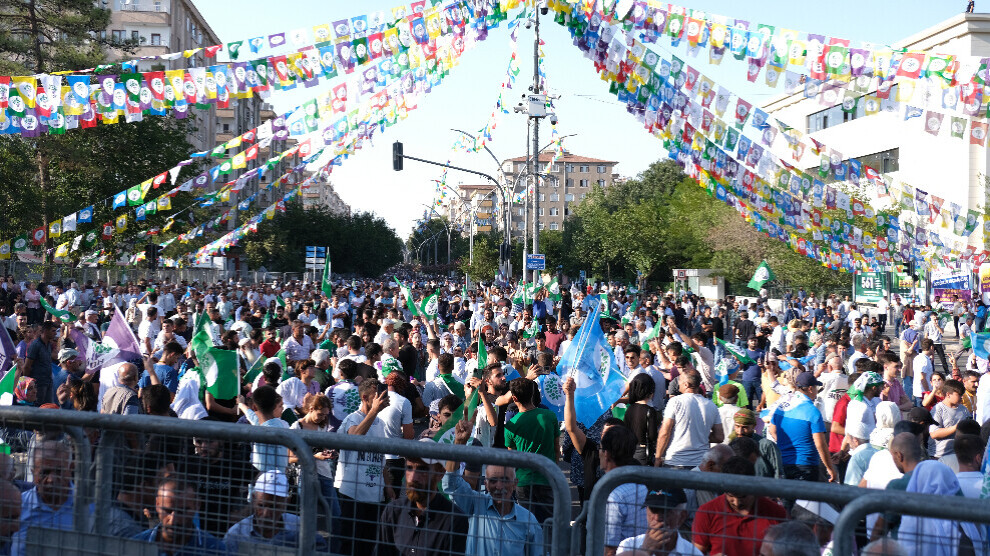 AMED – Partiya Demokratîk a Gelan (HDP) bi dirûşmeya “Çareserî em in, na ji dagirkeriyê re” li Qada Îstasyonê ya Amedê mitînga herêmê li dar dixe. Qada mitîngê bi alên HDP’ê hatiye xemilandin. Her wiha pankarta “Azadî ji hemû girtiyên nexweş re” ku wêneyê Aysel Tûglûk li ser bû û pankartên “Na ji faşîzm û rejîma yekzilamî re”, “Wê faşîzm winda bike, azadî bi ser bikeve”, “Ji qedexeyên zimanê dayîkê û qirkirina çandî re na”, “Komkujiya jinên Êzidî, komkujiya mirovahiyê ye”, “Bi rakirina parêzbendiya jinan re vîna jinan nayê desteserkirin”, “Ji xizaniya jinê re na”, “Na ji aboriya nelirêtî, xizanî û rantê re”, “Berxwedana li dijî qirkirina jinan jiyan e, çareserî em in, çareserî jin in”, “Na ji dejenerekirina ciwanan re” û “Jin, jiyan, azadî” hatin vekirin.