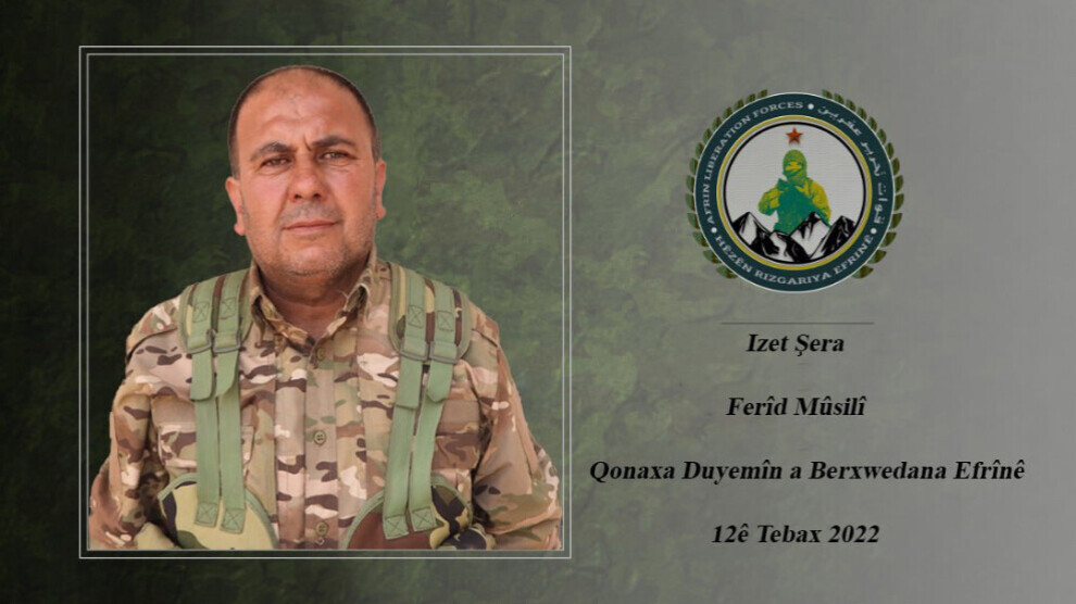 NAVENDA NÛÇEYAN – Hêzên Rizgariya Efrînê (HRE) têkildarî şehadeta Izet Şera daxuyaniyeke nivîskî weşand.