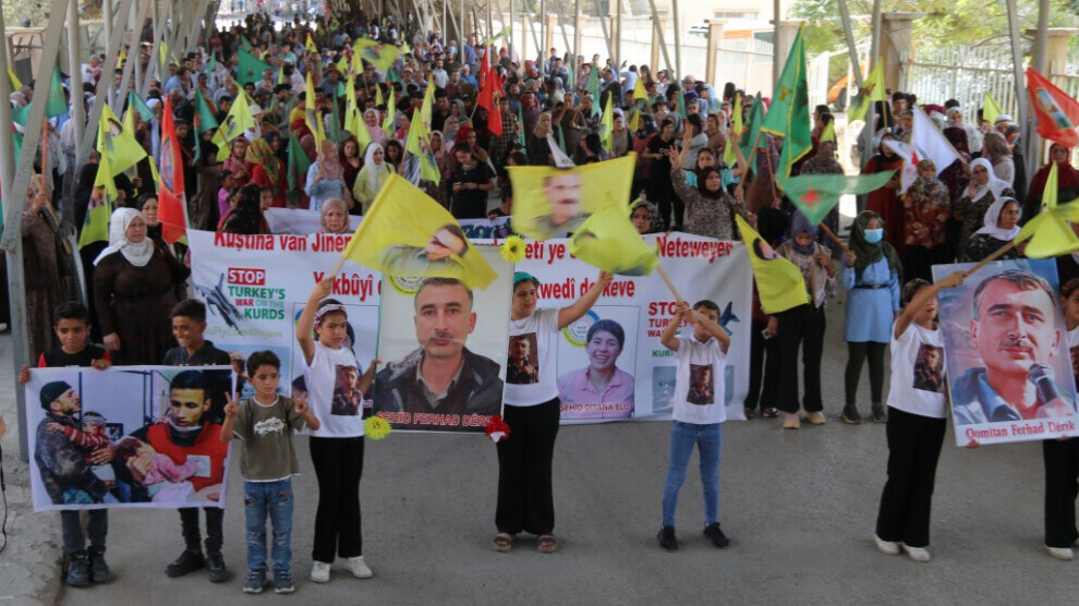 Li bajarê Dêrikê yê Rojava, bi sedan kesan êrîşên dagirkeriyê yên dewleta Tirk protesto kirin.