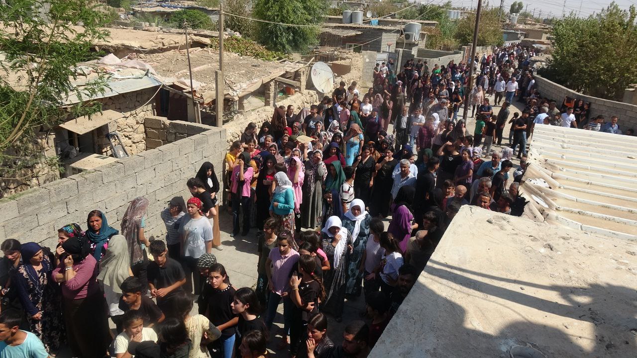 Daxuyanî bi siloganên şehîd namirin bi dawî bû. Şêniyên wargehê li ber Saziya Malbatên Şehîdan ji bo pêşwazîkirinê li benda cenazeyê şehîdê xwe ne.