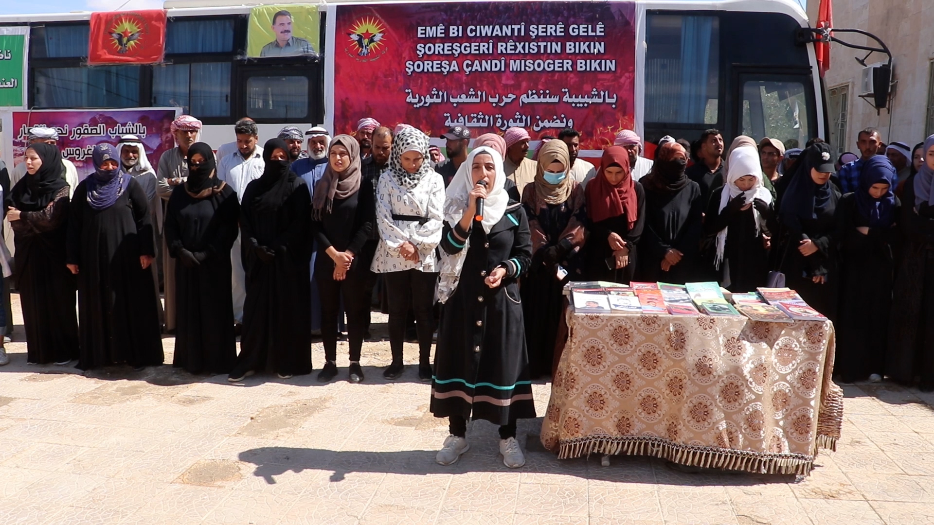TEBQA – Îro li bajarokê Mensûra çalakiya pirtûkxaneya gerok ku pirtûkên fikir û felsefeya Rêberê Gelan Abdullah Ocalan di nava xwe de dihewîne hate vekirin.