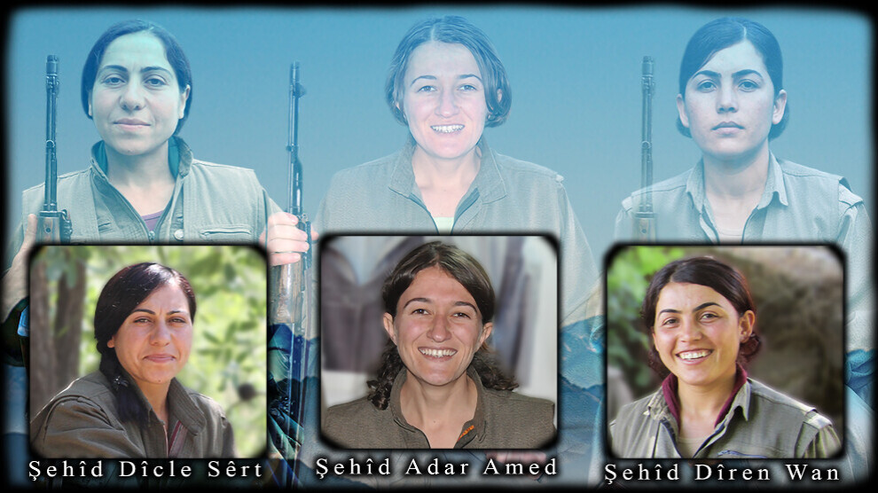 “Hevrêyên me Dîren, Adar û Dîcle ku bi baweriyeke mezin bi îdeolojiya azadiyê ya Rêber Apo ve hatin girêdan, derketin serê çiyayên Kurdistanê û ji bo azadiya jinan û gelê me dilê xwe kirin senger, 20’ê Îlona 2022’an di şerê dijî artêşa Tirk a dagirker de heta nefesa xwe ya dawî bi lehengî şer kirin, ji çanda berxwedanê ya Partiya me tawîz nedan û şehîd bûn.