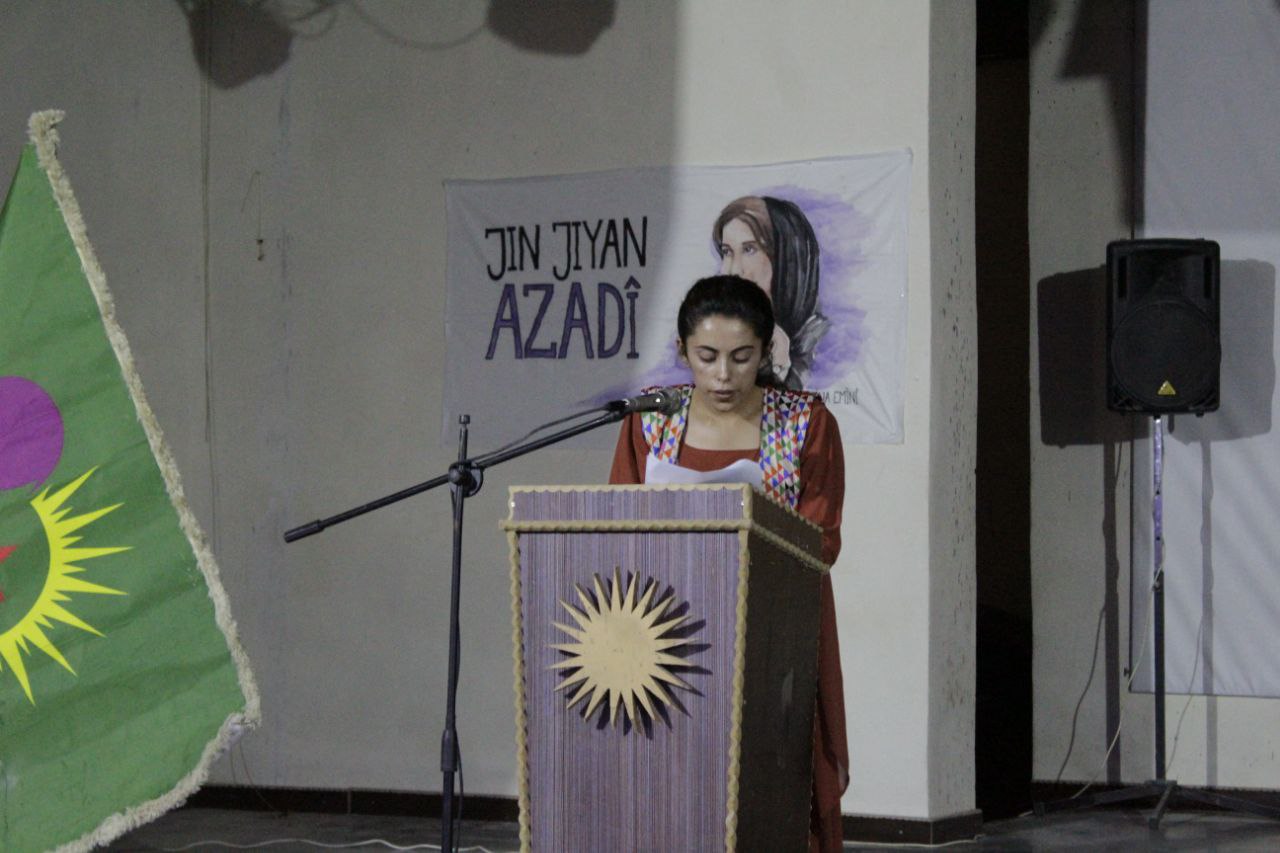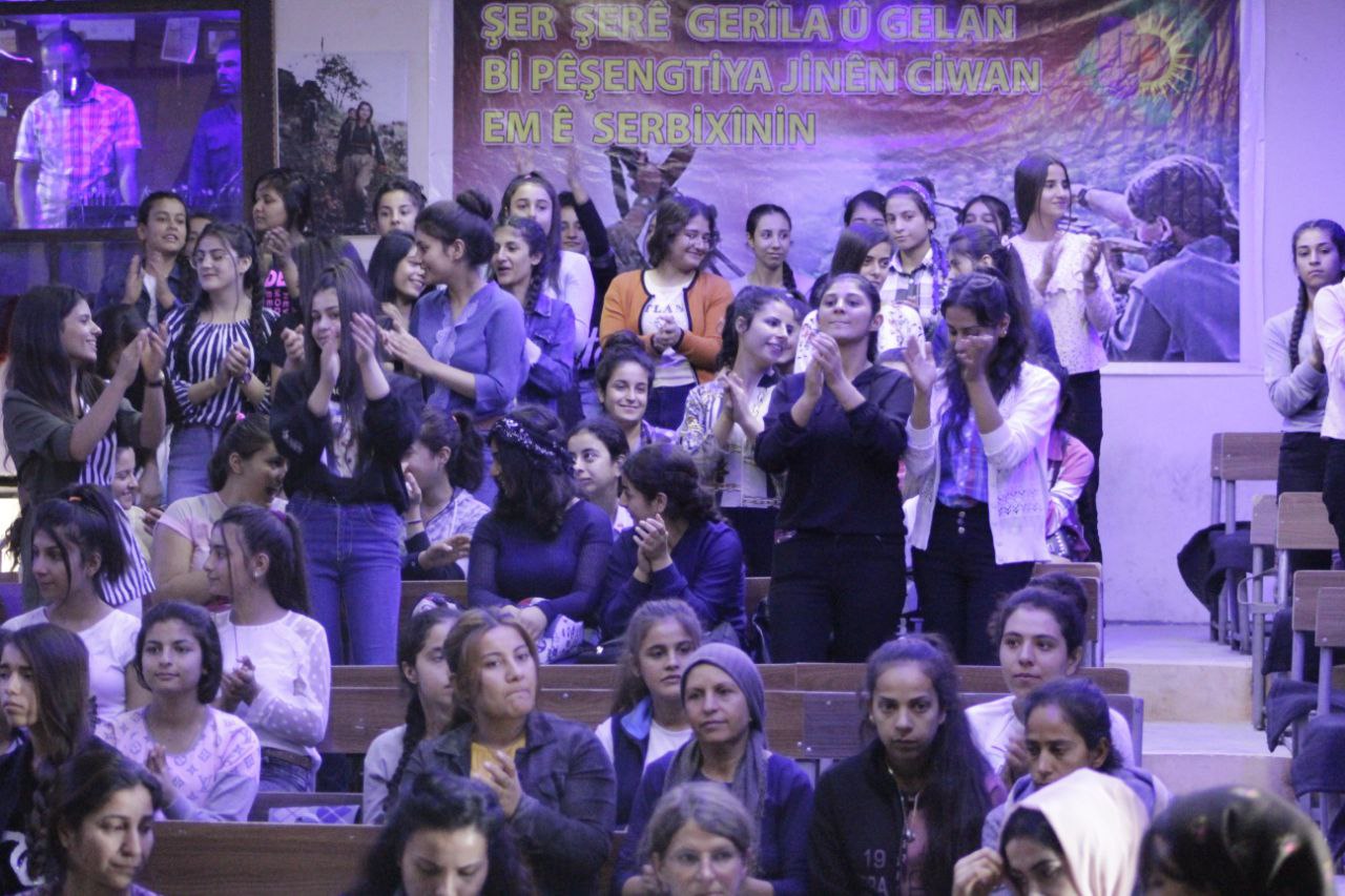Di destpêkê de jinên ciwan perspektîfên Rêberê Gelan Abdullah Ocalan ya derbarê girîngiya rola jinê di civakê de xwendin, ew jî ji aliyê endama Yekîtiya Jinên Ciwan Emîne Hec Ebdo ve hate xwendin. Piştre jî rapora 2 salan hate xwendin. Her wiha jinên ciwan piştî wê sinevizyon temaşe kirin.
