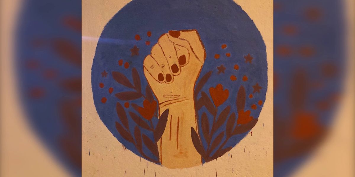 Tevgera Jinên Ciwan ên Mexmûrê li ser dîwaran xebatê xêzkirinê ku sembola berxwedana jinan e, dan meşandin.