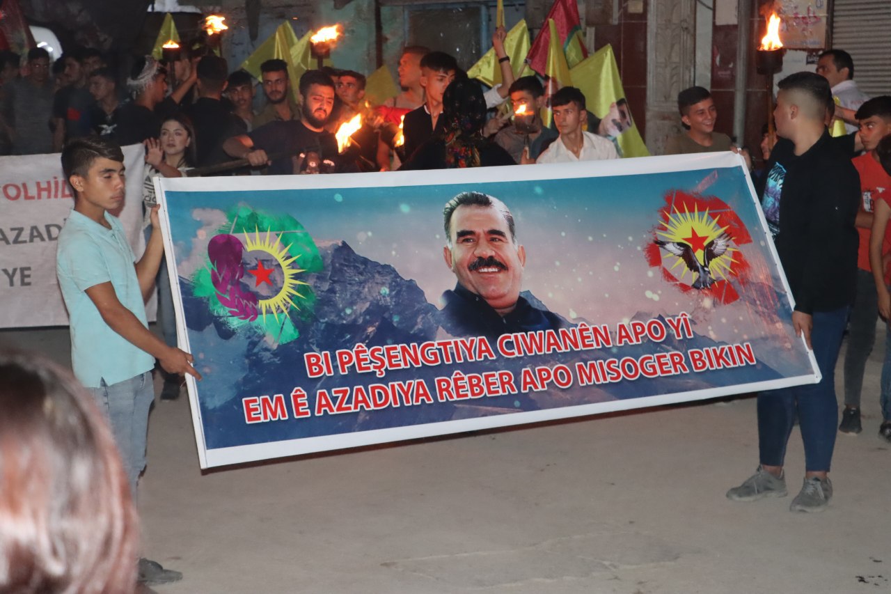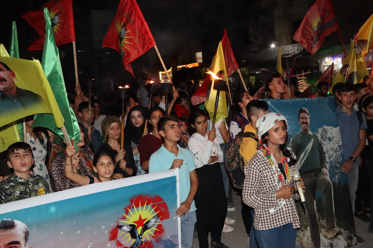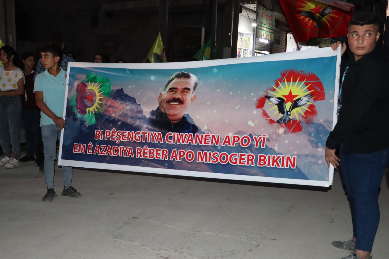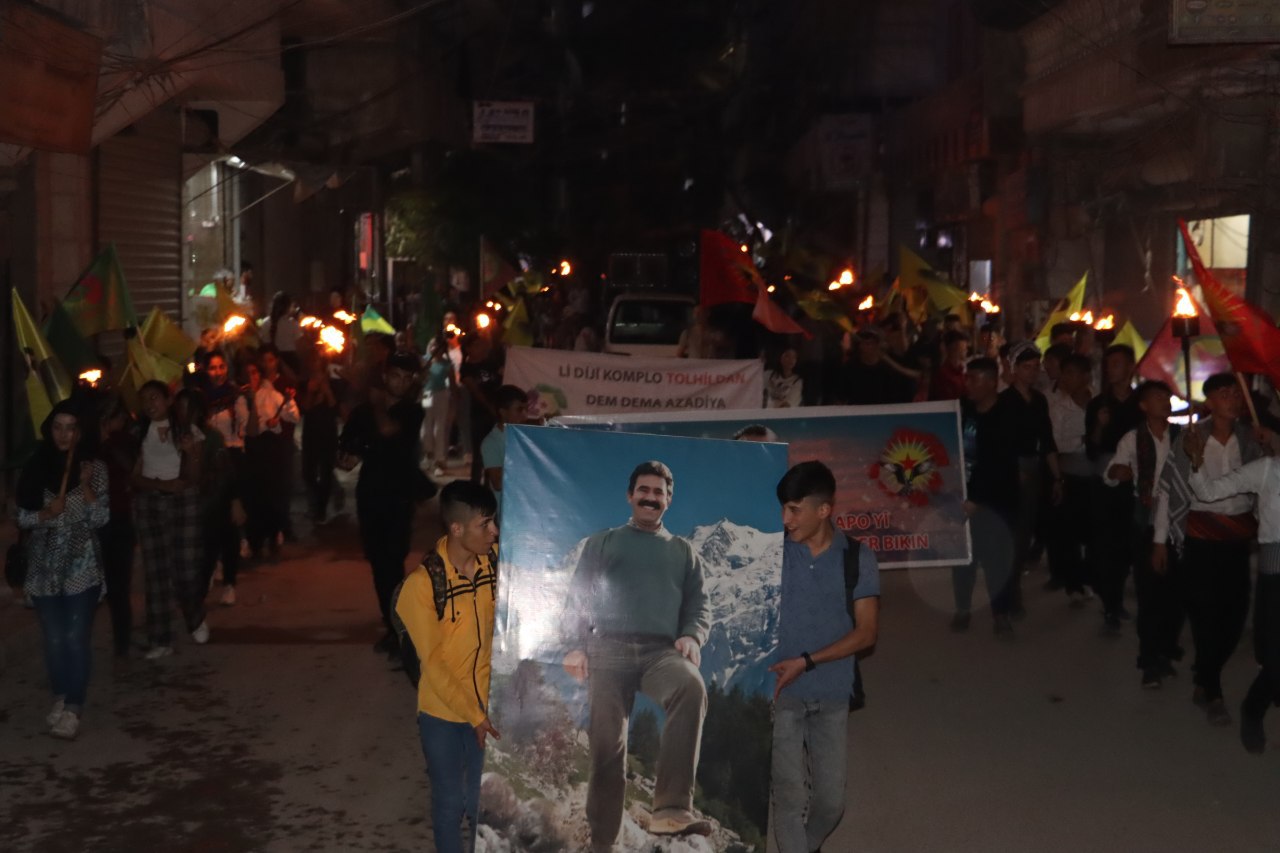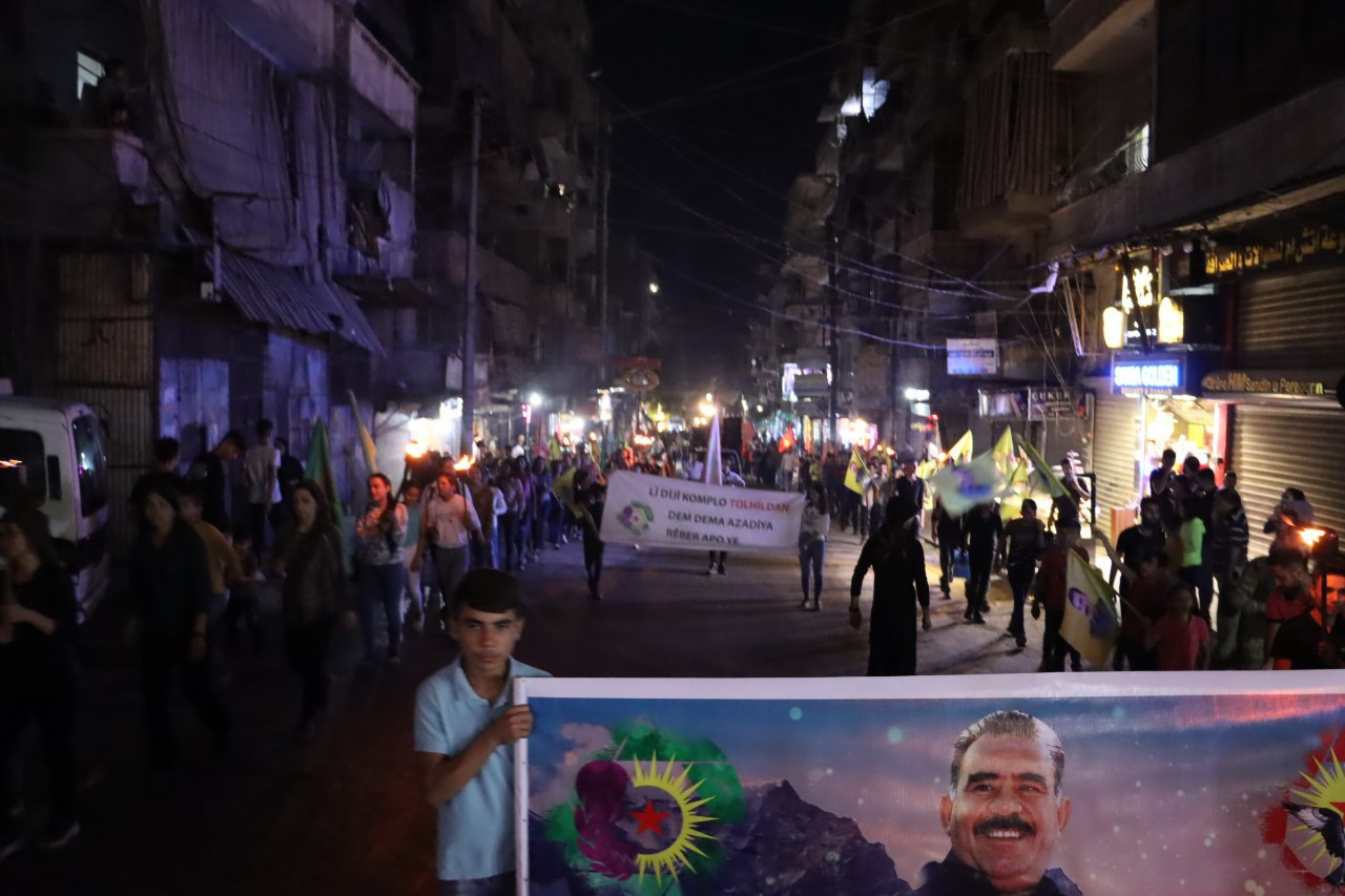 Meş li çerxerêya Rêber Apo ya li beşê rojhilat ê taxê veguherî mîtingê. Piştî deqeya rêzgirtinê endamê Tevgera Ciwanên Şoreşger a Sûriyê Cûdî Efrîn axivî û got: “Ji 24 salan ve tecrîdeke giran li ser rêber Apo di girtîgeha Îmraliyê de ferz kirine da ku îrade û berxwedana wî bişkînin. Lê bi bin ketin û negihiştin armancên xwe. Bi berxwedana gerîla ya li hemberî dagirkeriya Tirk û bi têkoşîna gelan komplo vala hat derxistin.”