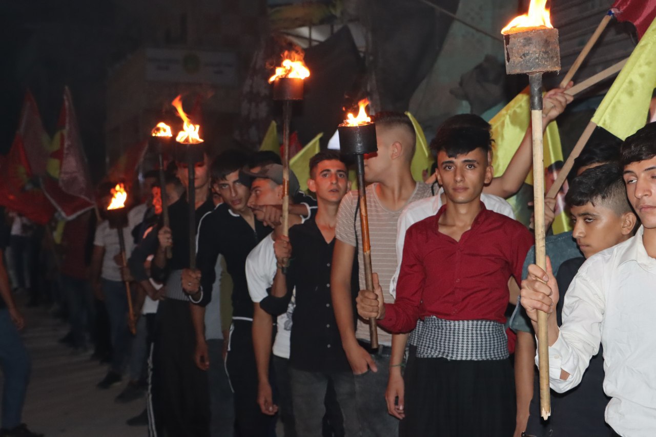 HELEB- Li taxa Şêxmeqsûd a Helebê jî Tevgera Ciwanên Şoreşger a Sûriyê bi boneya salvegera komploya 9ʹê Cotmehê meşek li dar xist.