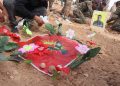 Bi sedan şêniyên Bajarê Reqa yê , endamên saziyên sivîl,endamê Tevgera Ciwanên Şoreşger ê Sûriyê, nûnerên partiyan, li goristana Bajarê Reqa yê kom bûn û tevlî merasîmê bûn.