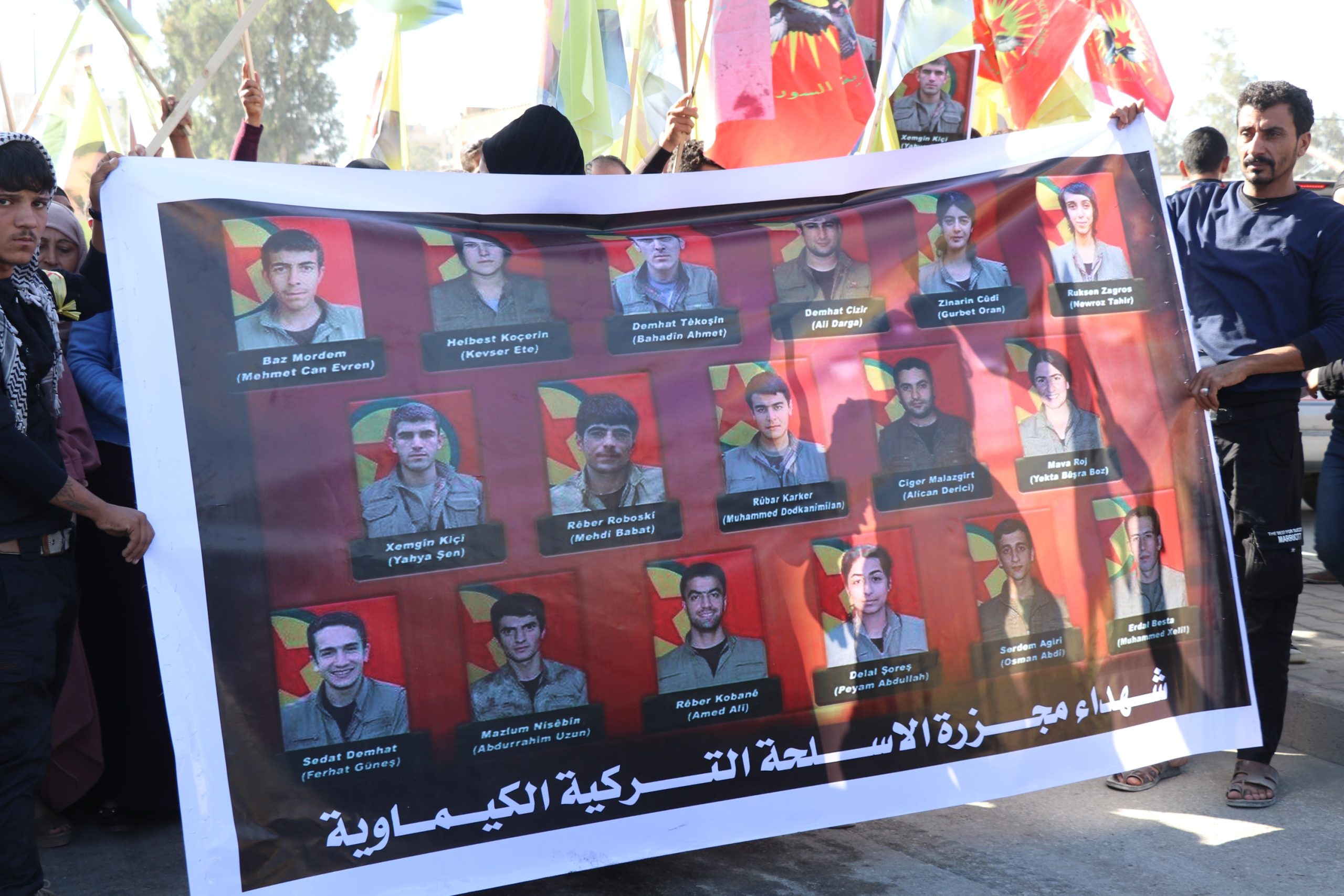 REQA- Bi hezaran şêniyên reqa, endamên Tevgera Ciwanên Şoreşger, Yekitiya Jinên Ciwan, endamên saziyên sivîl, li qada Meclisa Giştî ya bajêr kom bûn û wêneyên 17 şehîdên gerîla ku vê dawiyê di êrişên kîmyewî yên dewleta Tirk a dagirker de şehîd bûbûn, rakirin.