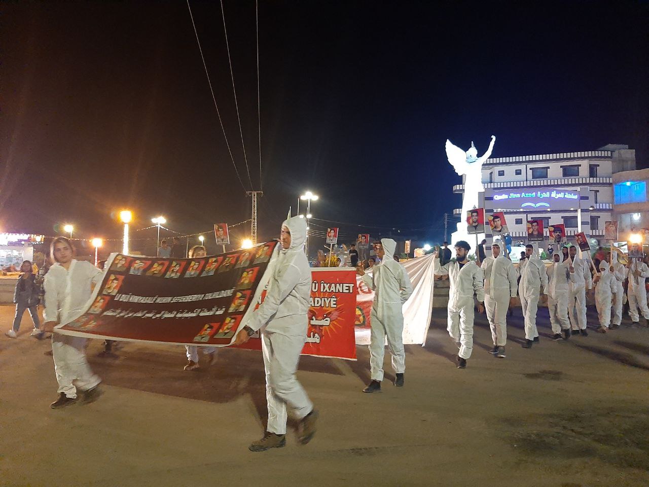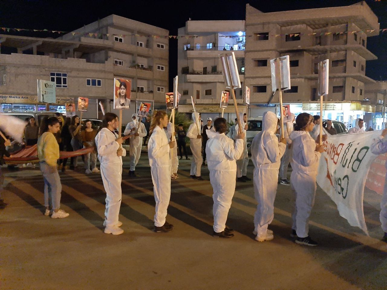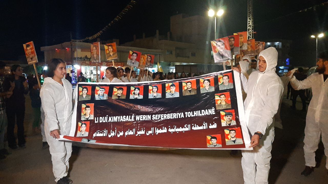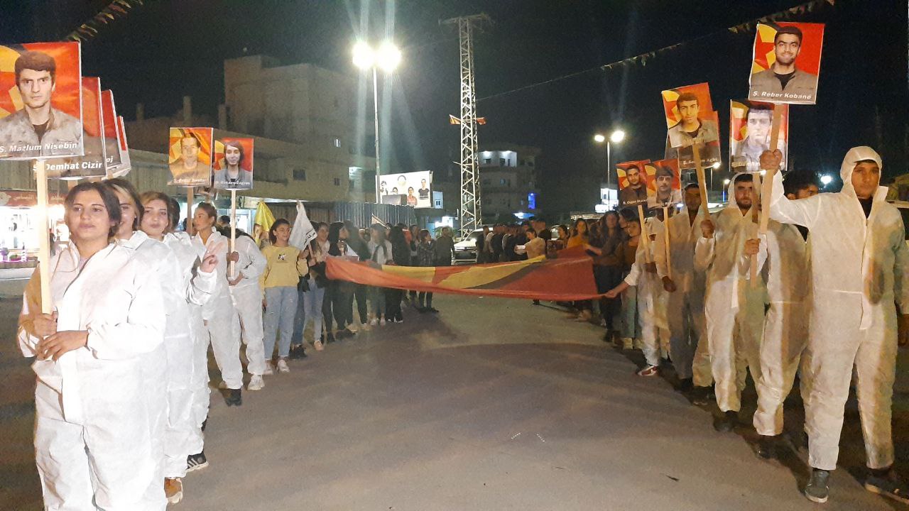 KOBANÊ – Li Kobanê bi pêşengtiya Yekîtiya Xwendekarên Demokratîk bi dirûşma ‘Li Dijî Kîmyasalê Werin Seferberiya Tolhildanê’ bi tevlîbûna sedan endamên Tevgera Ciwanên Şoreşger û Yekîtiya Jinên Ciwan û piştevaniya şêniyên herêmê meşek hate li darxistin.