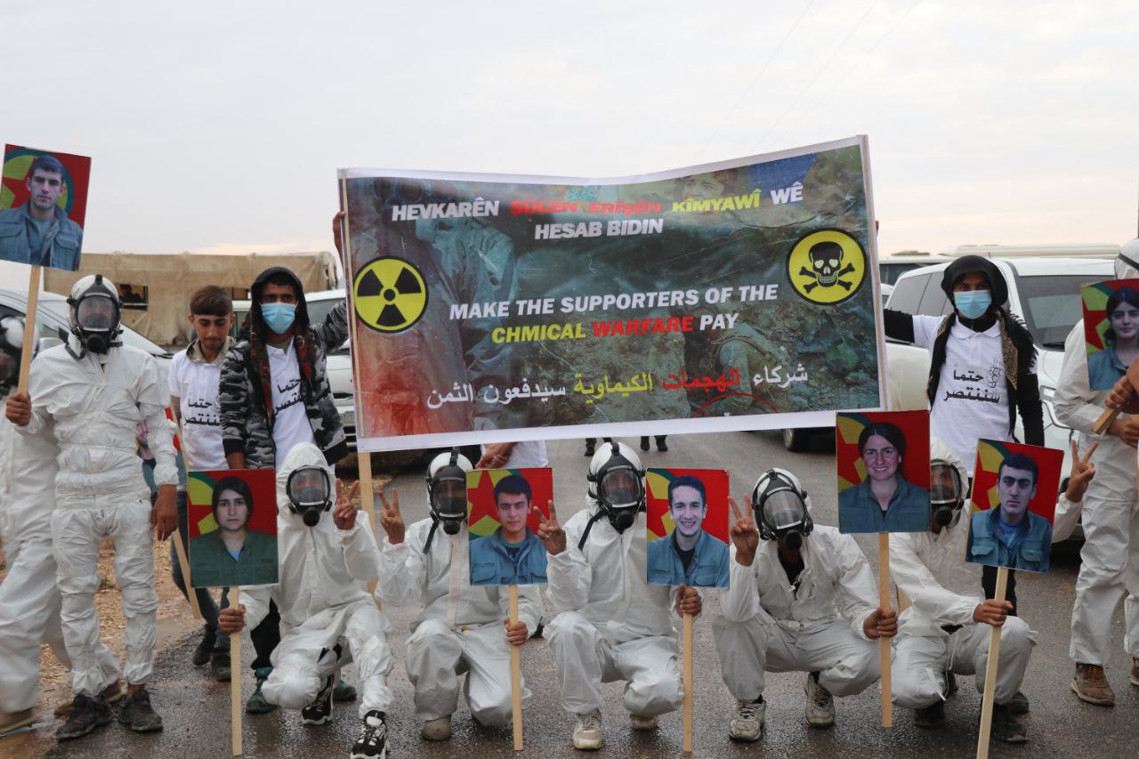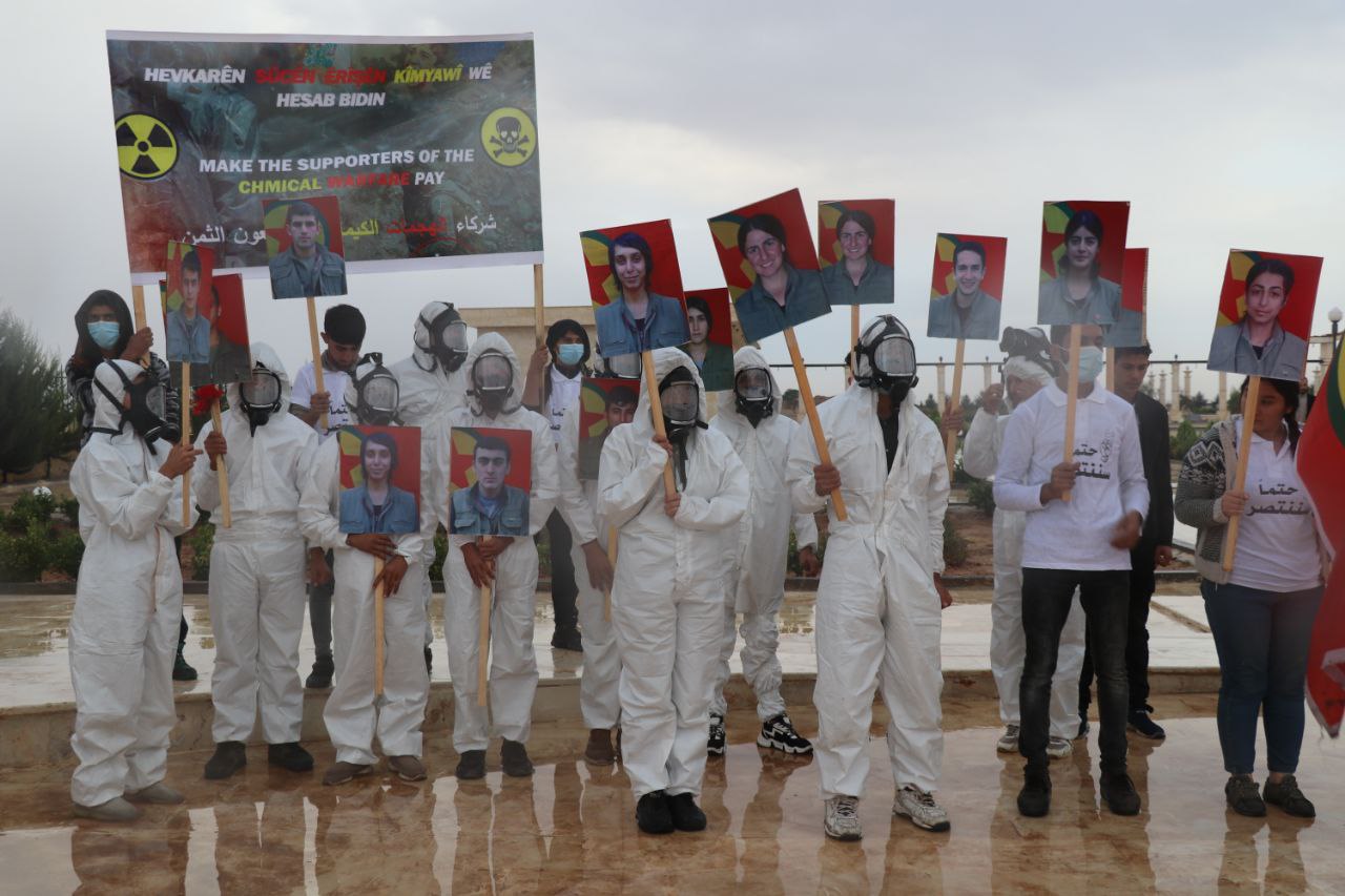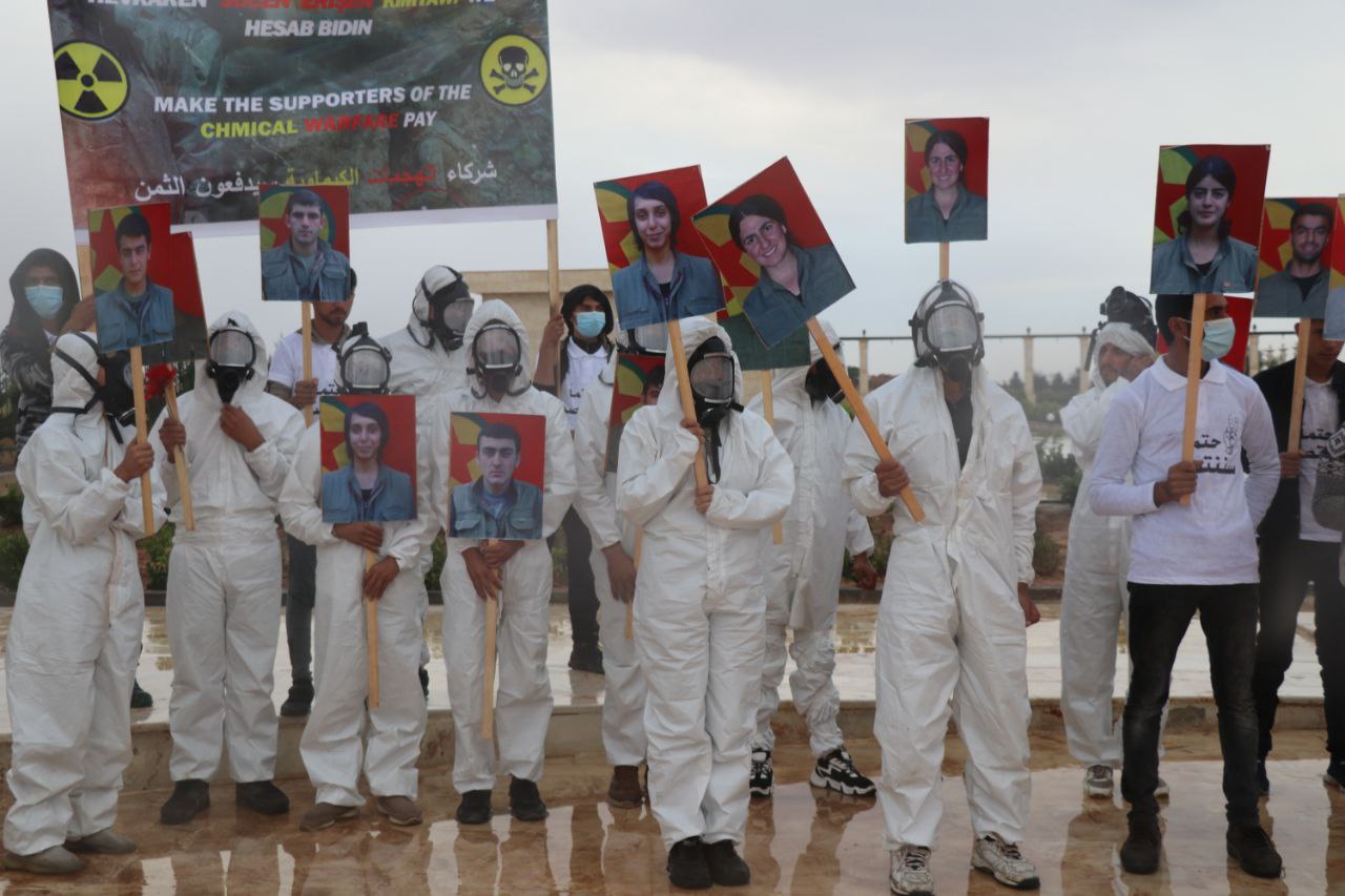 REQA- Bi tevlîbûna ciwanên Ereb Tevgera Ciwanên Şoreşger li Reqayê li dijî bikaranîna çekên qedexe û kîmyewî yên li ser qadên gerîla meşiyan.