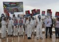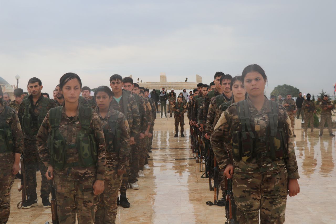 Meşa ciwanan heta Goristana Şehîdan dom kir. Li vir ciwan bi merasîmeke leşkerî ya ji aliyê Meclîsa Leşkerî ya Reqayê ve hatin pêşwazîkirin.