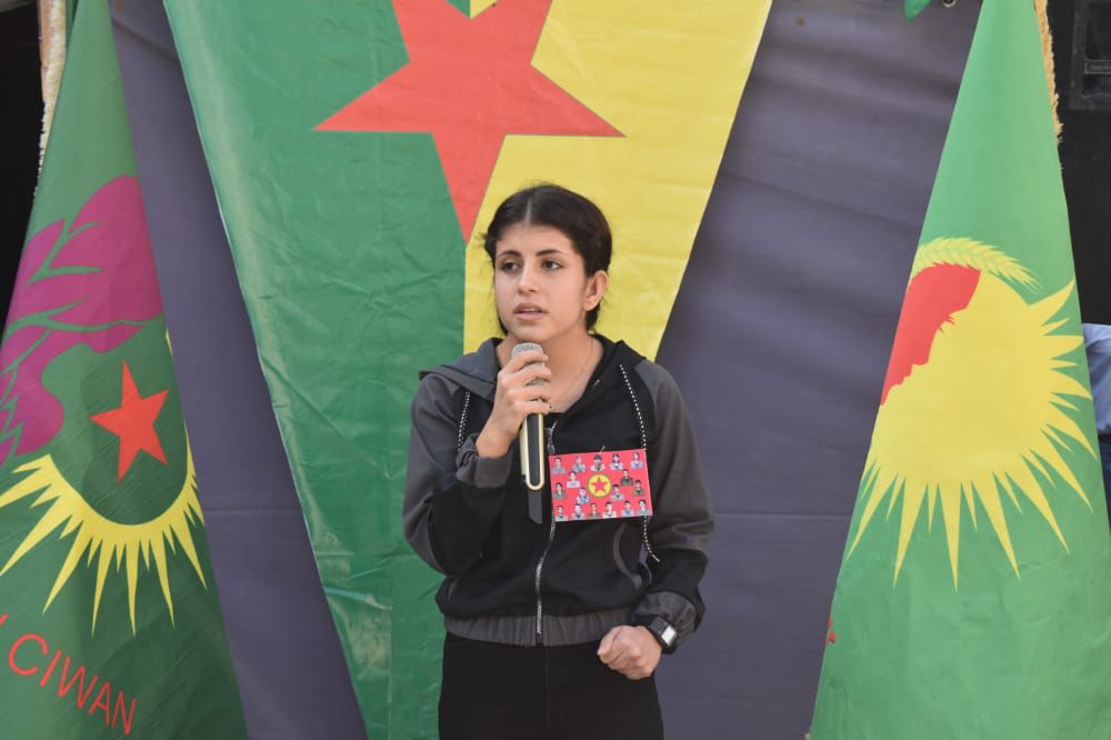 Heman demê de li ser navê Yekîtiya Jinên Ciwan jî Hêva Bekir axivî. Hêva di nava axaftina xwe şehîdên doza azadiyê tevahî bi bîr anî û diyar kir ewê heya dawiyê li ser riya şehîdan têkoşîn bikin.