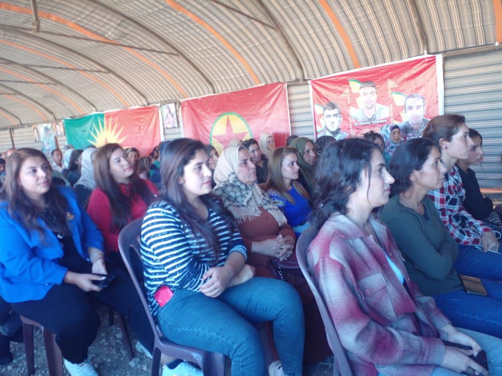 Di cihê kombûyînê de bi deqeyeke rêzgirtin ji bo bîranîna tevahî şehîdên şoreşa azadiya Kurdistanê, li ser navê Yekîtiya Jinên Ciwan ji aliyê Zeyneb Yûsif ve axaftin hate kirin.