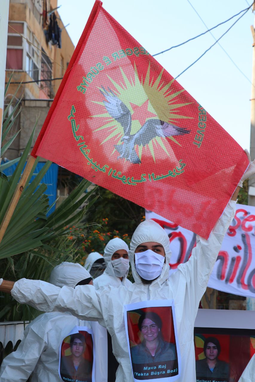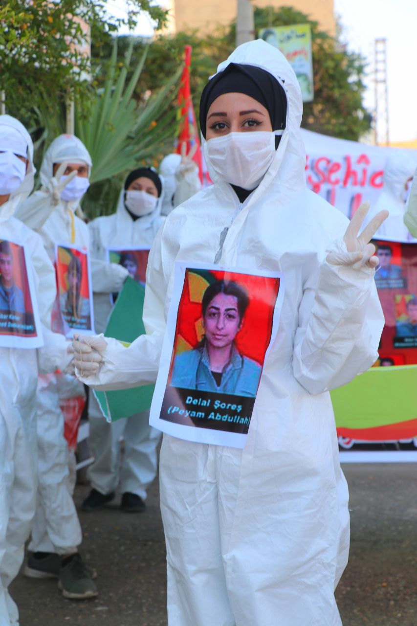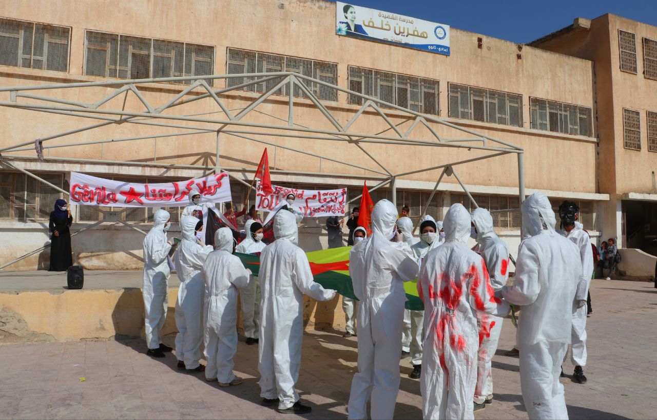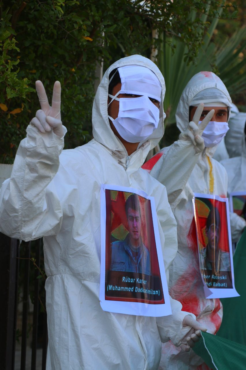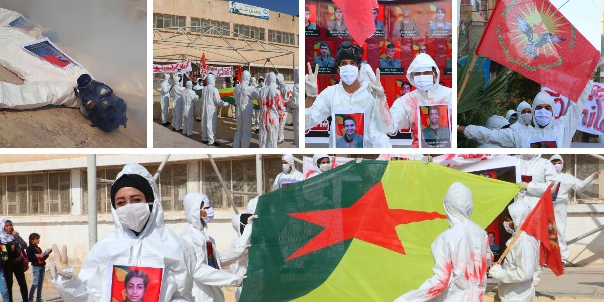 Di çalakiyê de komek xwendekar bi cilên spî û tedbîrên parastinê yên li dijî çekên kîmyewî, wêneyên 17 gerîlayên ku bi çekên kîmyawî şehîd bûne rakirin.